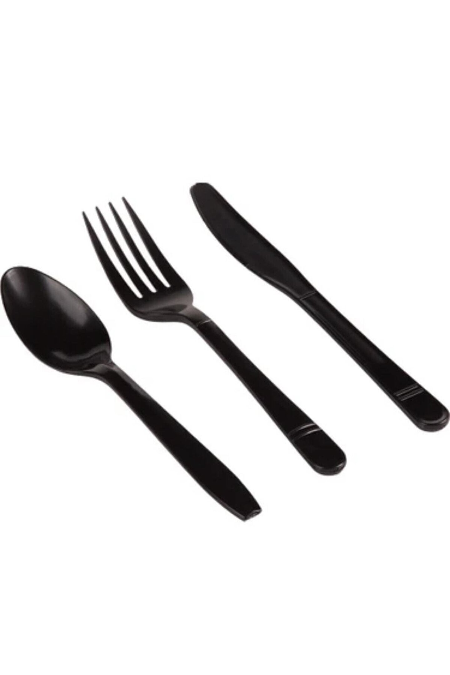 14 SÜS Siyah 50 kişilik plastik çatal bıçak kaşık
