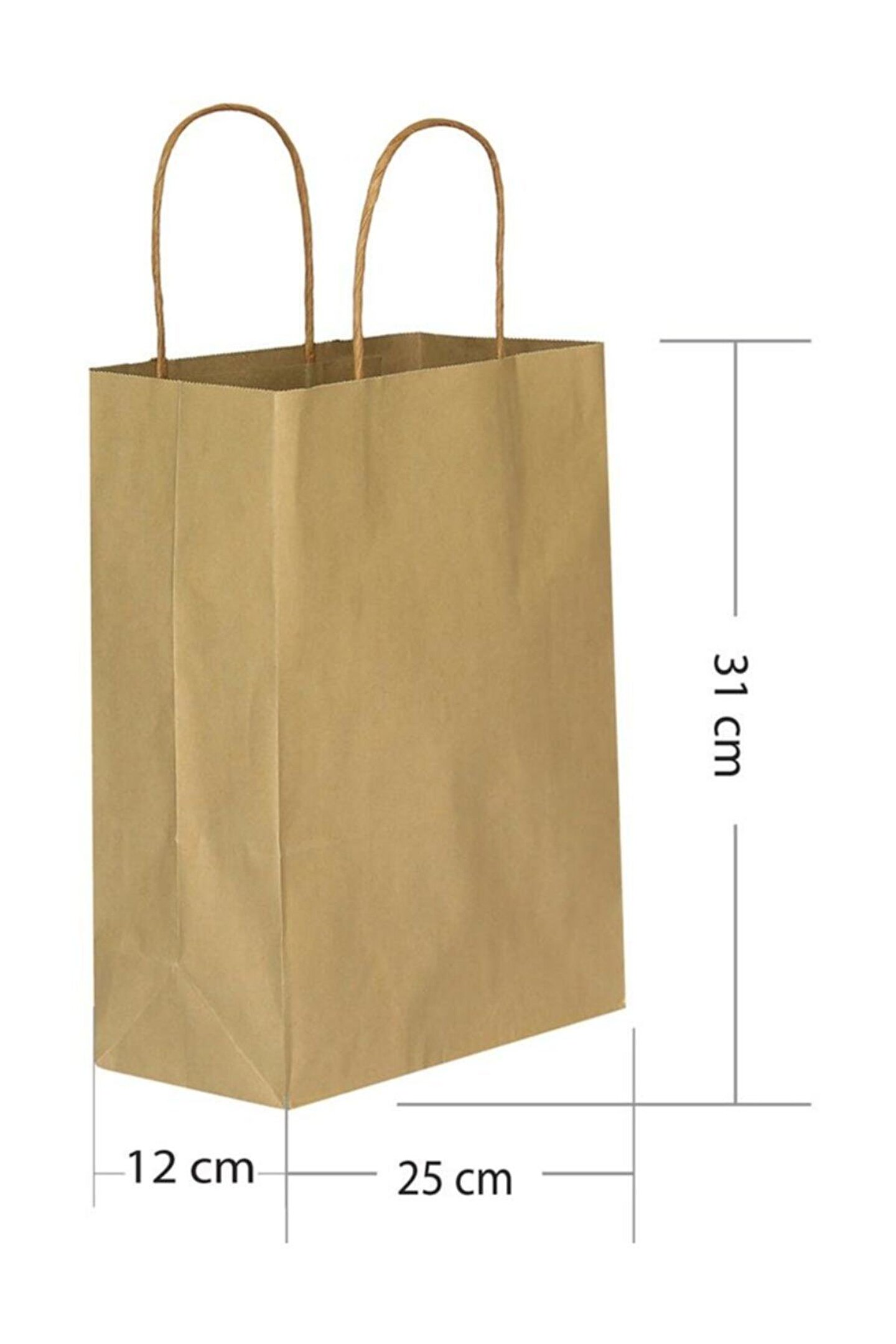Büküm saplı kraft kağıt çantaKraft kağıt çantanın ortalama ölçüleri 25x31 cm.; 'dir.; Saplı karton çantanın ölçüleri 0,5 ile 1 cm.; ; arası küçüklük veya büyüklük yönünden değişkenlik gösterebilir.; Kraft büküm saplı kağıt çantaları hediye paketlemede, özel günlerinizde, organizasyonlarda vb.; ; alanlar da rahatlıkla kullanabilirsiniz.; Not: Kağıt çantanın renginde bir tona kadar renk farkı olabilir.;