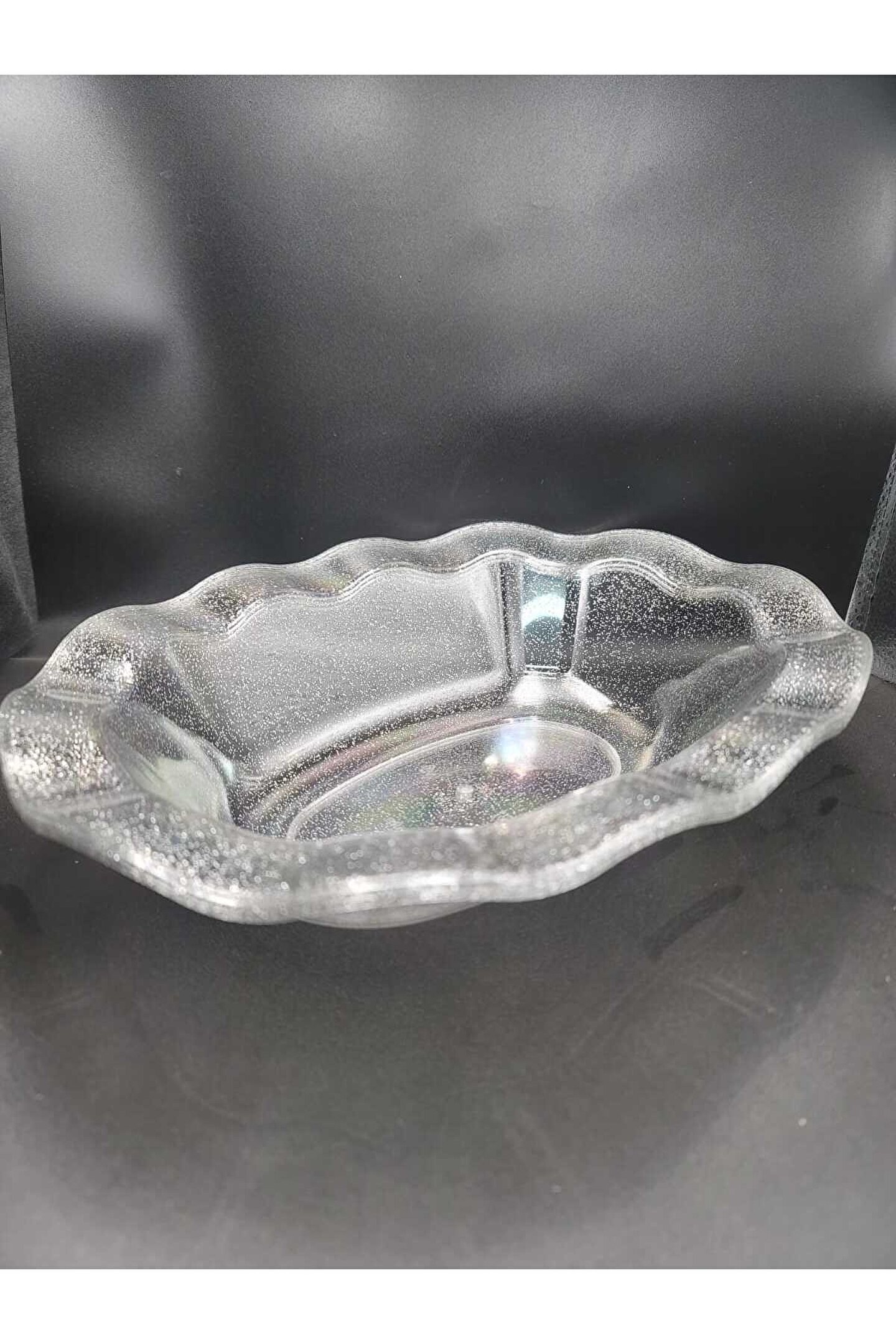 14Süs Mika Lüks Plastik Salata Kasesi Simli Gümüş 3 Adet