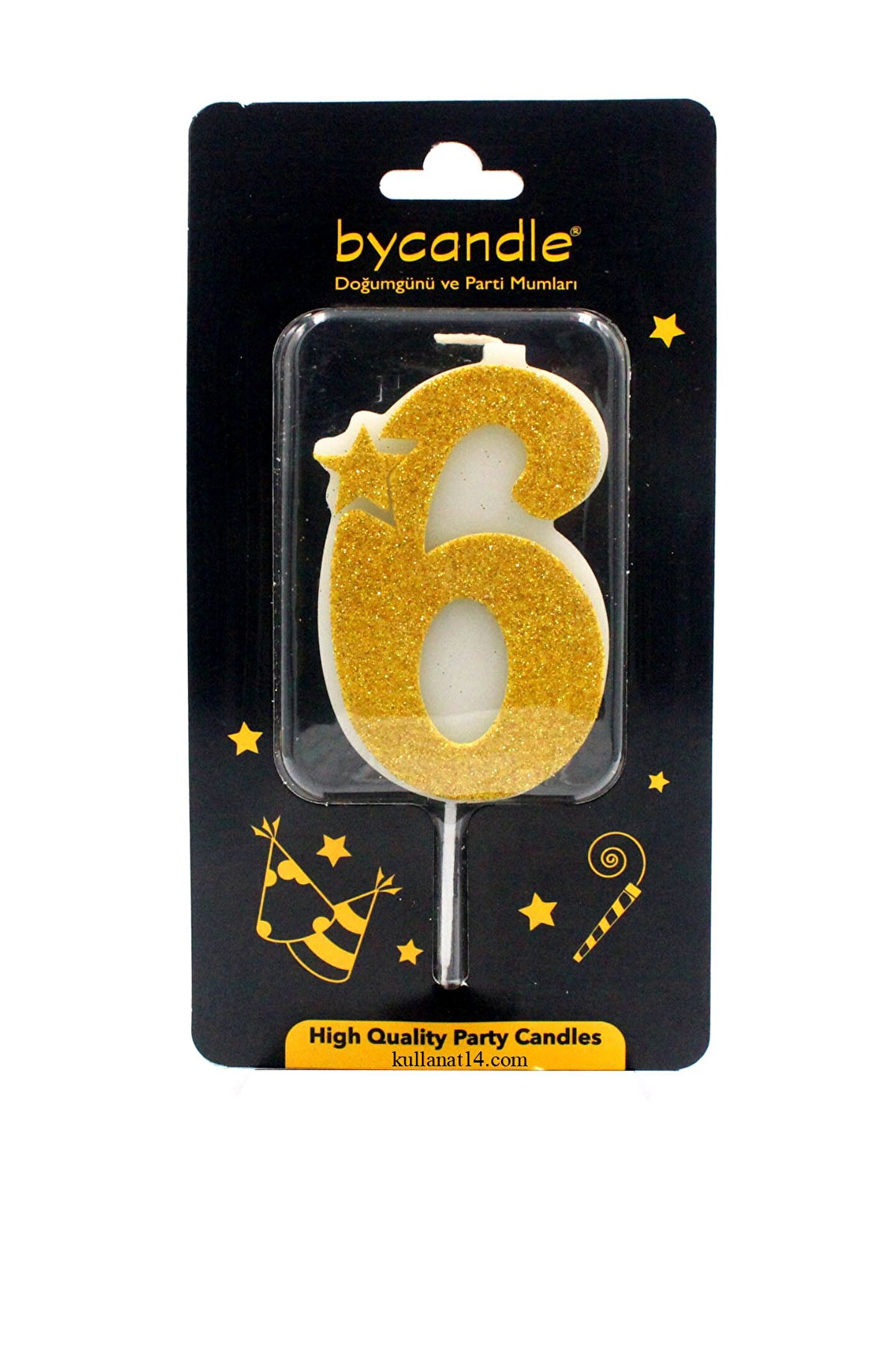 14Süs Simli Sarı Rakam Mum-6