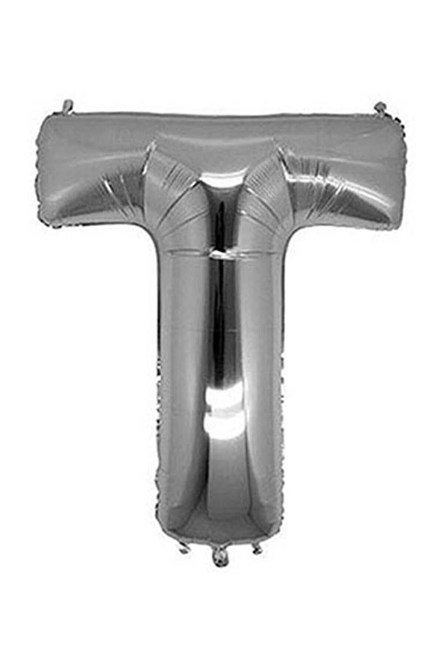 14Süs T Harf Silver Folyo Balon Harfli Helyum Balon 100 Cm Dev Boy