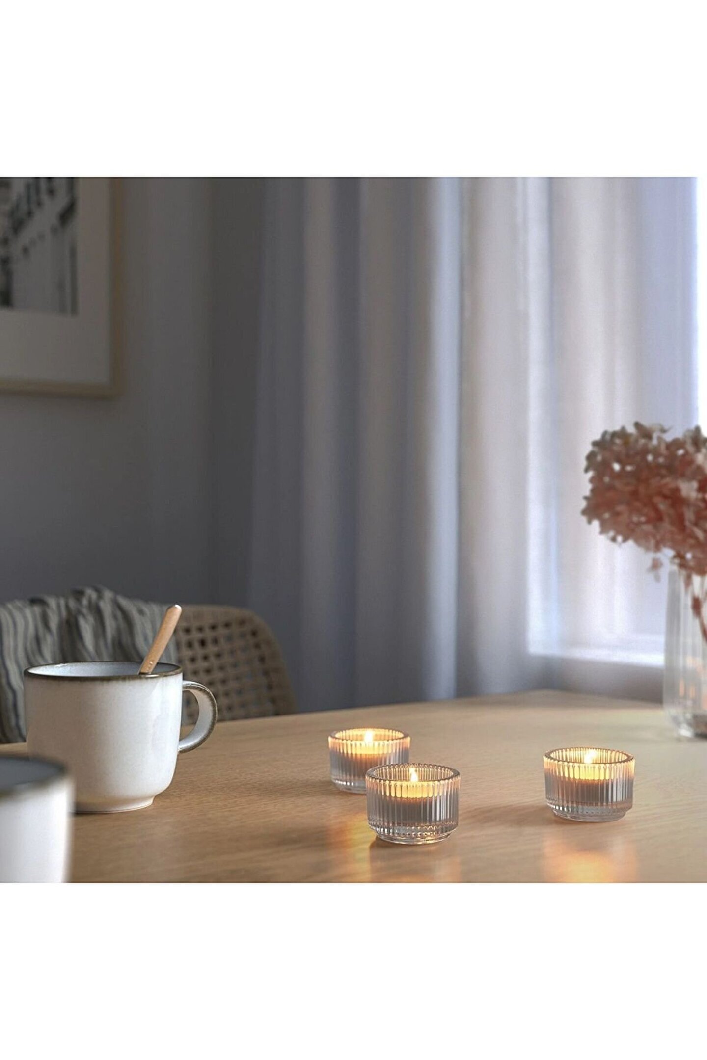 Şık ve modern tasarımıyla dikkat çeken saydam cam malzeme, her türlü dekorasyona kolayca uyum sağlar; 3; 5 cm çapındaki geniş tabanı sayesinde, mumların yanması sırasında ışığı daha geniş bir alana yayarak mekanınıza sıcak ve davetkar bir atmosfer katar; Üç adet kokulu mum ile birlikte gelen bu şamdan, evinizde hoş bir koku yayarak keyifli anların vazgeçilmez bir tamamlayıcısı olur; Cam malzemesi sayesinde mumların yanması sırasında balmumu lekelenmesini önler ve temizliği kolaylaştırır;