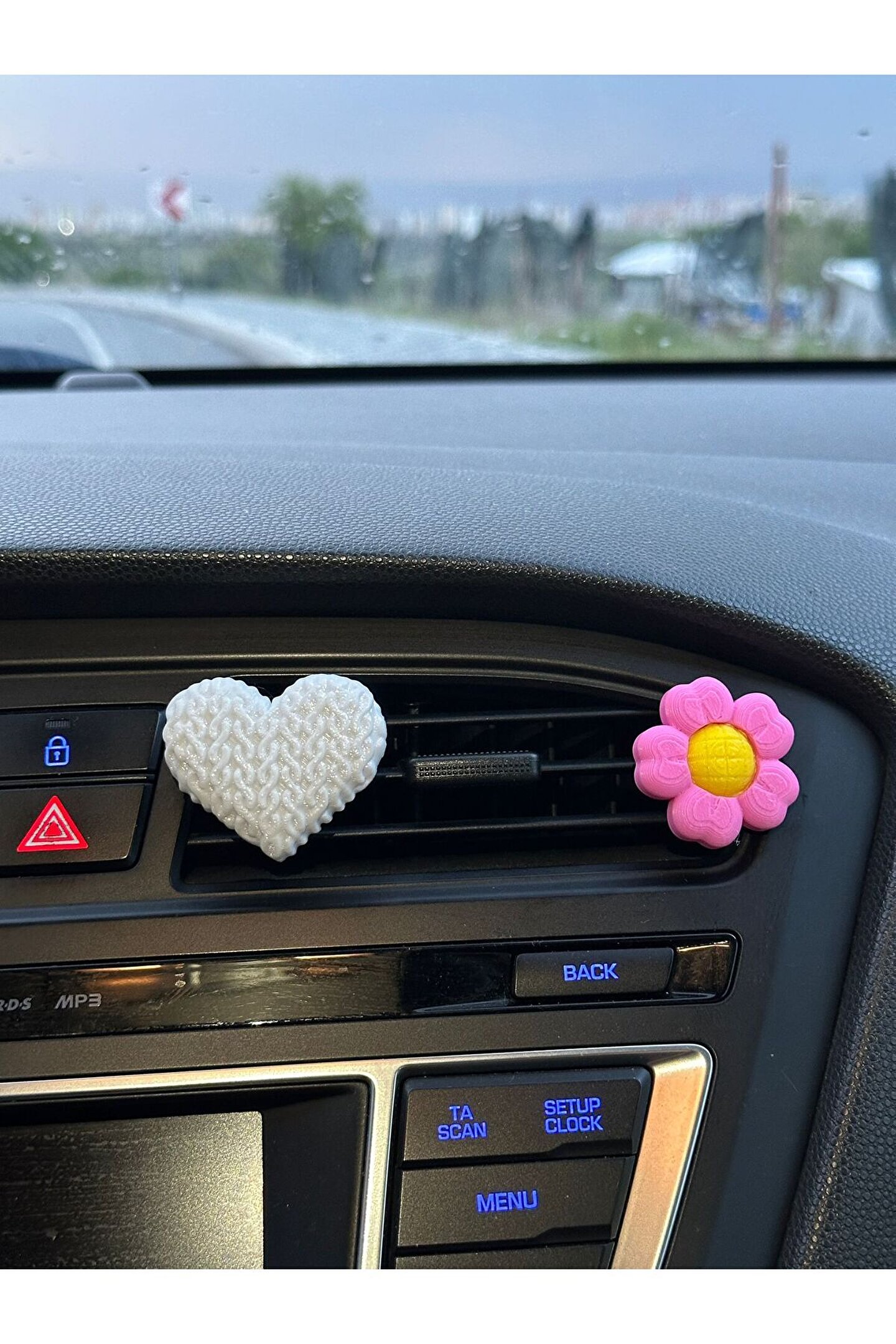- iki adet renkli çiçek ve kalp papatya tasarımına sahip, arabanızın iç dekorasyonuna şıklık katan aksesuarlar.; - Torpido üzerinde estetik bir görünüm sunarak sürüş keyfinizi artırır.; - Kolay montaj imkanı sayesinde hızlı ve pratik bir şekilde arabanızın iç süslemelerini tamamlar.; - Menşei Türkiye'den gelen bu aksesuarlarla yerel üretim kalitesini yansıtır.; 1 adet çiçek ve 1 adet kalp gönderilmektedir