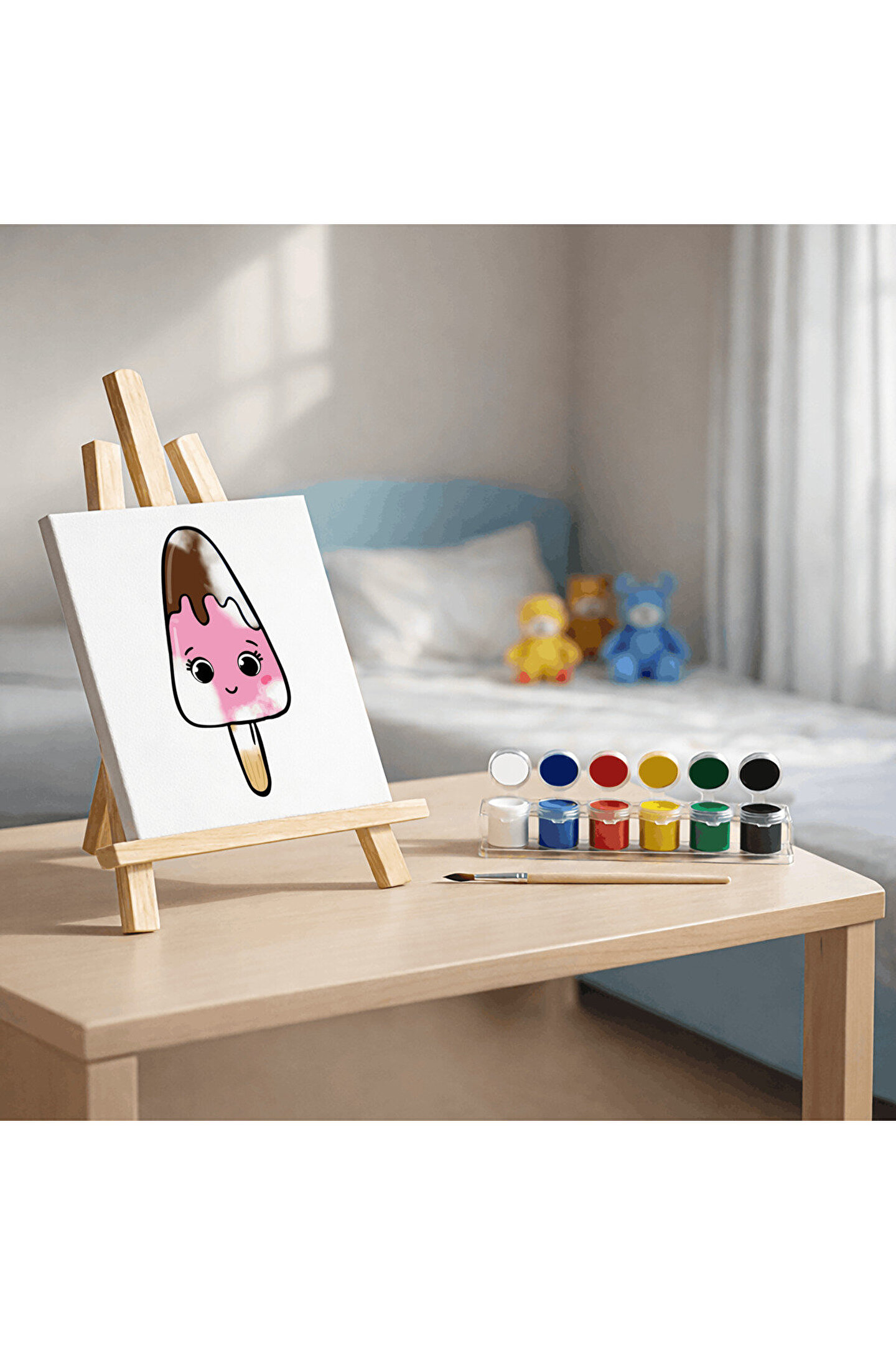 3DreaMaker Çocuklar İçin Tuval Boyama Seti (Tuval, Fırça ve 6 Renk Akrilik Boya Seti) 20x20 Cm