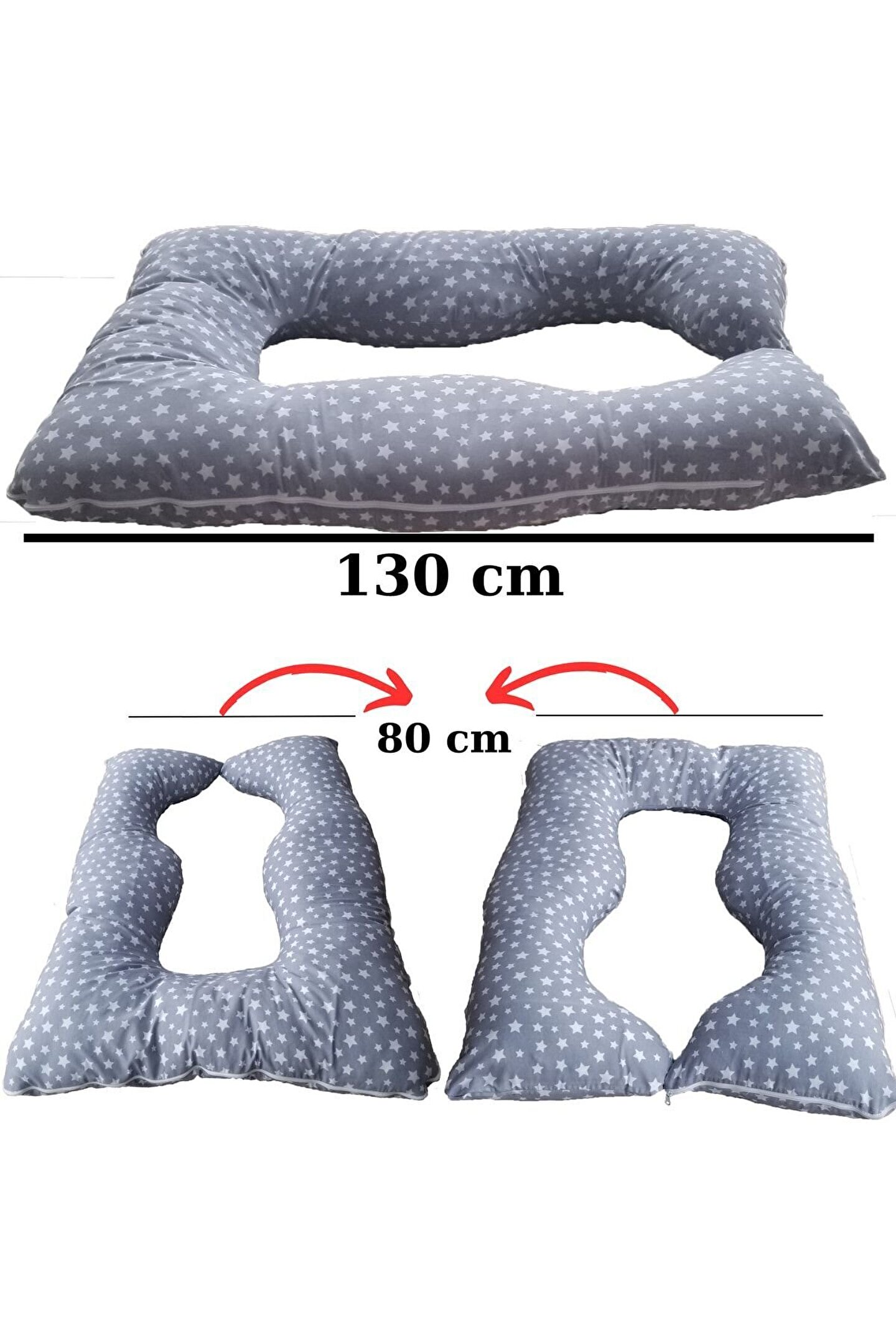 %100 Pamuklu Gri Yıldızlı Kumaş Çift Renk Emzirme Yastığı, Destek Minderi, Düz Kafa Yastığı