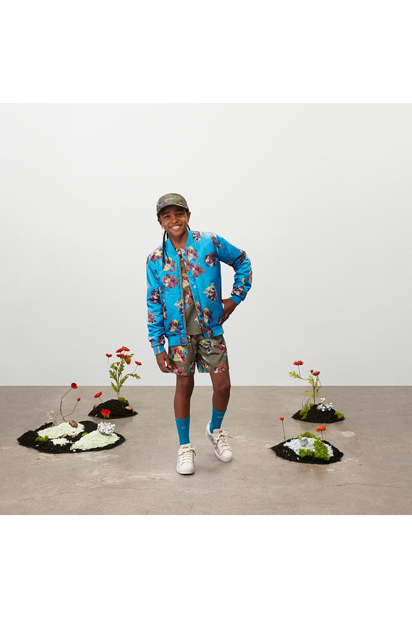 XL beden Small giyen yetişkine uyumludur. ; A REVERSIBLE, GRAPHIC BOMBER JACKET MADE IN PART WITH RECYCLED CONTENT. ; This kids' adidas x IVY PARK bomber jacket explores natural, organic elements through a colourful crystal print. ; It's made in smooth, luxurious satin fabric and crafted for a loose fit that drops lower at the back. ; Reverse it and it reveals a bold blue contrast to the more muted tone. ; A zip pocket on the sleeve keeps essentials close and accessible.Made in part with recycled content generated from production waste, e.g. ; cutting scraps, and post-consumer household waste to avoid the larger environmental impact of producing virgin content.;