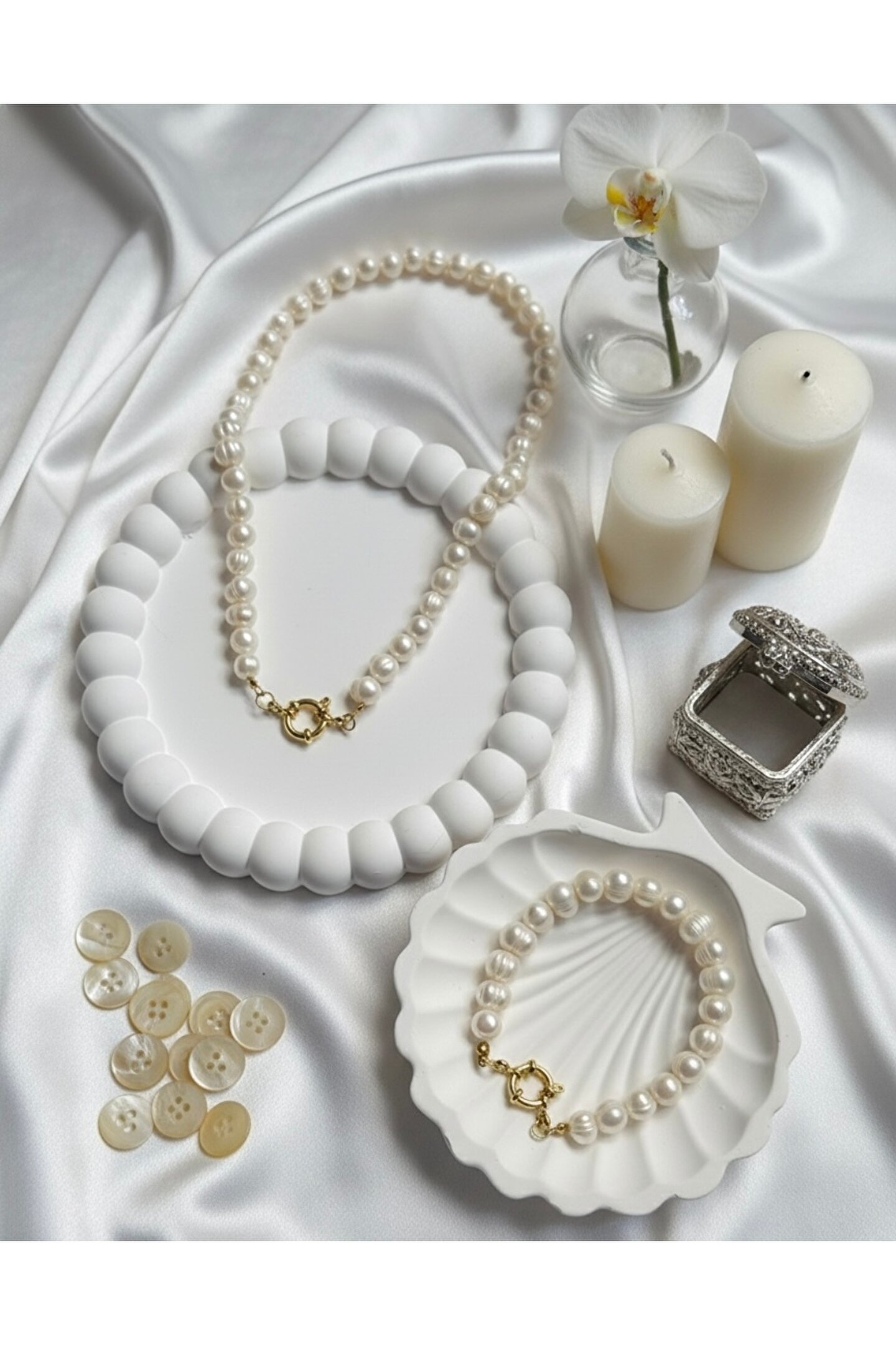 TASARIMIMIZDA KULLANILAN TÜM APARATLAR %100 316L ÇELİKTİR PASLANMA KARARMA ASLA YAŞANMAZ DUŞTA HAVUZDA DENİZDE KULLANILABİLİR… Öncelikle İnci Nedir? İnci taşı, sıcak ve ılıman sularda yaşayan istiridye ve midyelerden meydana gelir.; Oluşma süresi ortalama 10 yıldır.; İnci oluşumu istiridye kabuğunun içerisine kum yada başka bir yabancı maddenin girmesiyle başlar.; İstiridye bu maddeyi denilen bir madde ile kaplar.; Bu madde %92 oranında kalsiyum karbonat içermektedir.; Eğer yabancı madde ete tam olarak yerleşirse küre şeklinde, yerleşemez ise yarım küre şeklinde inci meydana gelir.; İnci Taşının Özellikleri İncinin değerini belirleyen en büyük etkenlerden biri istiridyenin yaşıdır.; Çünkü yaşı büyük olan istiridyenin incisi de büyük olur.; İncide en çok elde edilen renkler pembe, krem ve beyazdır fakat nadir olarak siyah incilere de rastlanabilir.; Ancak gerçek bir siyah inci çok değerli ve pahalı olduğundan oldukça fazla taklidi yapılmıştır.; Koyu parlak siyah bir inci, çok nadir bulunur ve oldukça pahalıdır.; İnci Taşının Bakımı ve Temizliği İnci’nin temizliğinde ılık su ve nemli bez veyahut toprak kullanmak yeterlidir.; İnci Taşının Faydaları * Cilt hastalıklarının tedavisinde yardımcı olur.; * Doğurganlığı ve .; * Akciğer ve için faydalıdır.; * Kemik ağrılarına, migrene, mide, dalak, bağırsaklar hastalıklarına karşı etkilidir.; * eğilimli kişiler üzerinde yatıştırıcı bir etkisi olduğu düşünülür.; * Duygu bozukluğu gibi kişiyi üzen hastalıkların tedavisinde etkisi vardır.; * İnsanlarla yakınlık kurmaya yardımcı olur.; * Şefkat, anlayış ve fedakarlık duygularını harekete geçirdiğine inanılır.; * Sanata yönelik zeka ve sezgi gücünü harekete geçirir