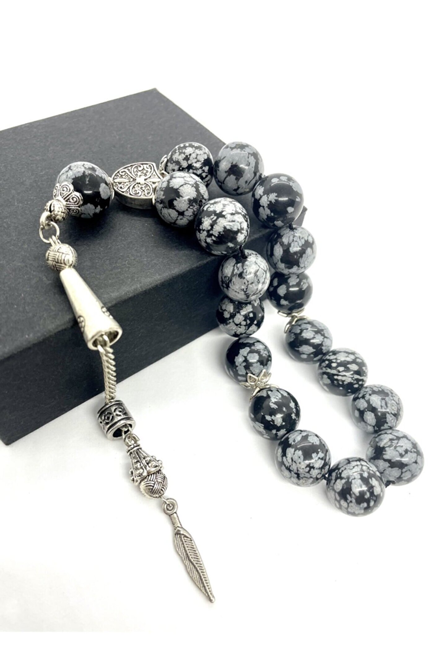 Orijinal obsidyen doğaltaş kullanılarak üretilmiş, doğal taş tesbih ile manevi bir deneyim sunar; Obsidyen taşı, yüksek kaliteli ve dayanıklı yapısıyla uzun süreli kullanım için idealdir; Tesbihin her bir bileşeni özenle seçilmiş ve işlenmiş, estetik görünümüyle dikkat çeker; Doğal taşın benzersiz dokusu ve renk tonları, her kullanımda farklı bir hissiyat yaratır; Tesbihin yapımında kullanılan malzemeler, hem doğallığı hem de estetiği ön planda tutularak seçilmiştir;