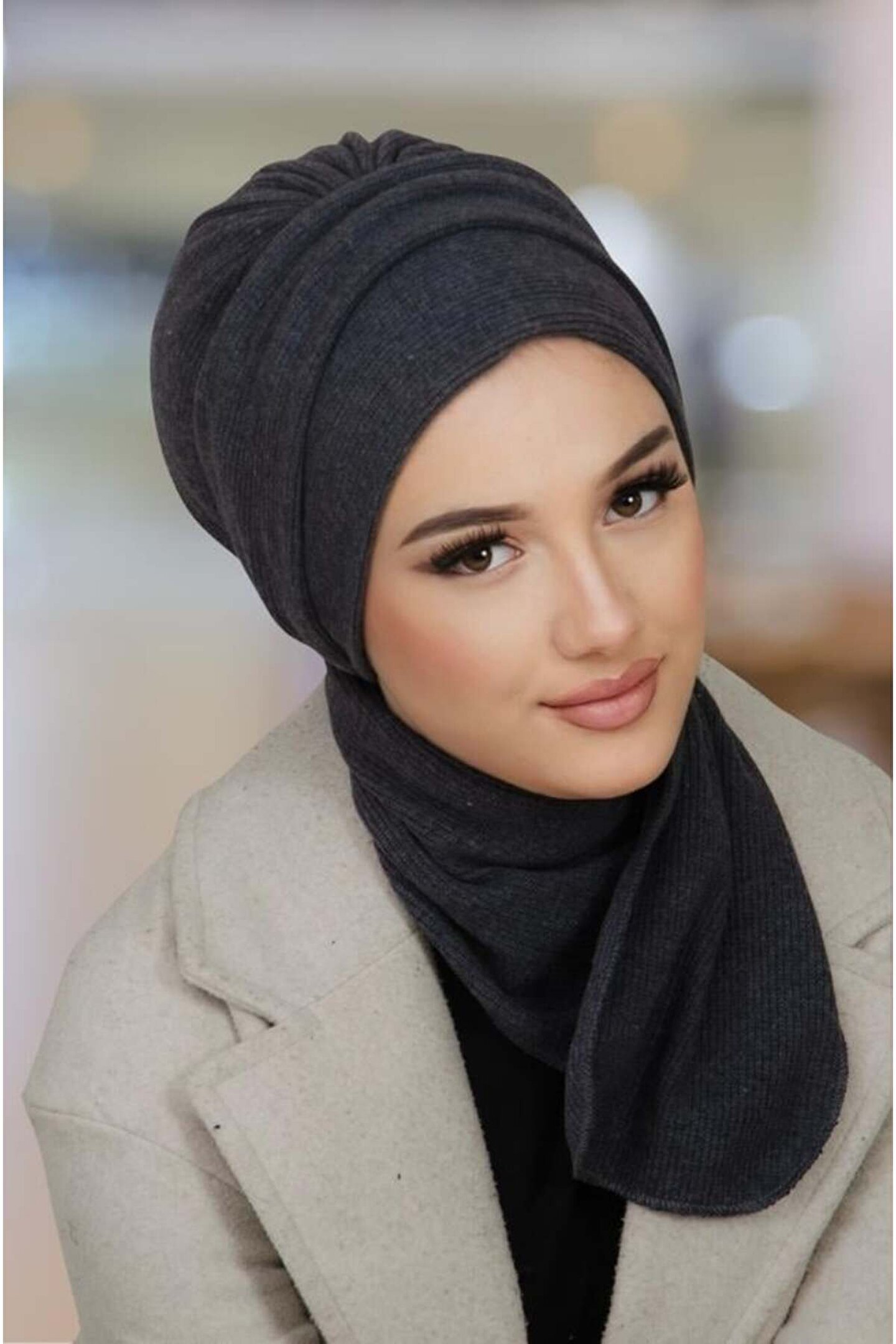Aişe tesettür Antrasit Triko Atkılı Tesettür Bone