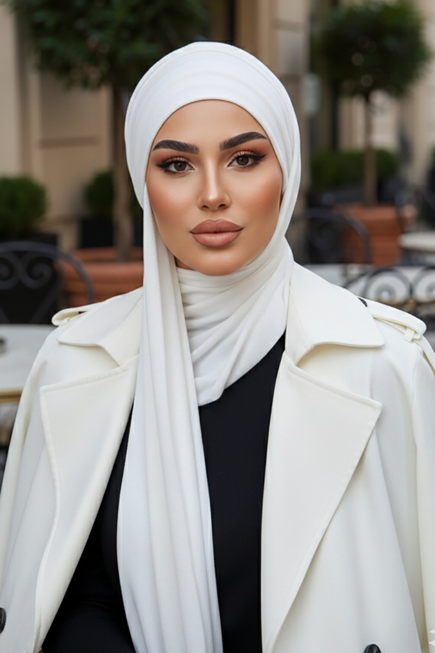 Aişe tesettür Beyaz Kelebek Bone Şal