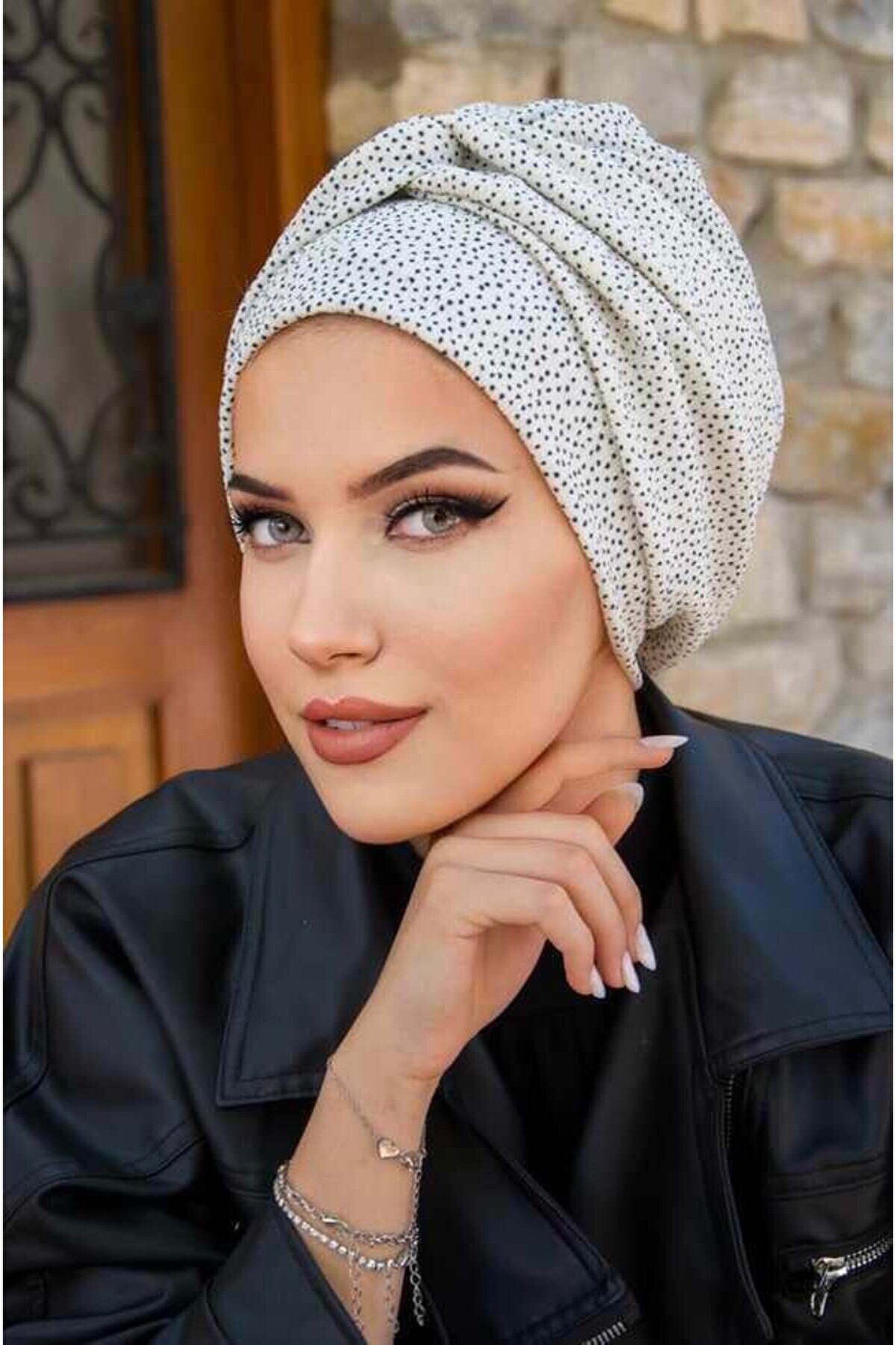 Aişe tesettür Beyaz Siyah Puan Burgu Detaylı Bone