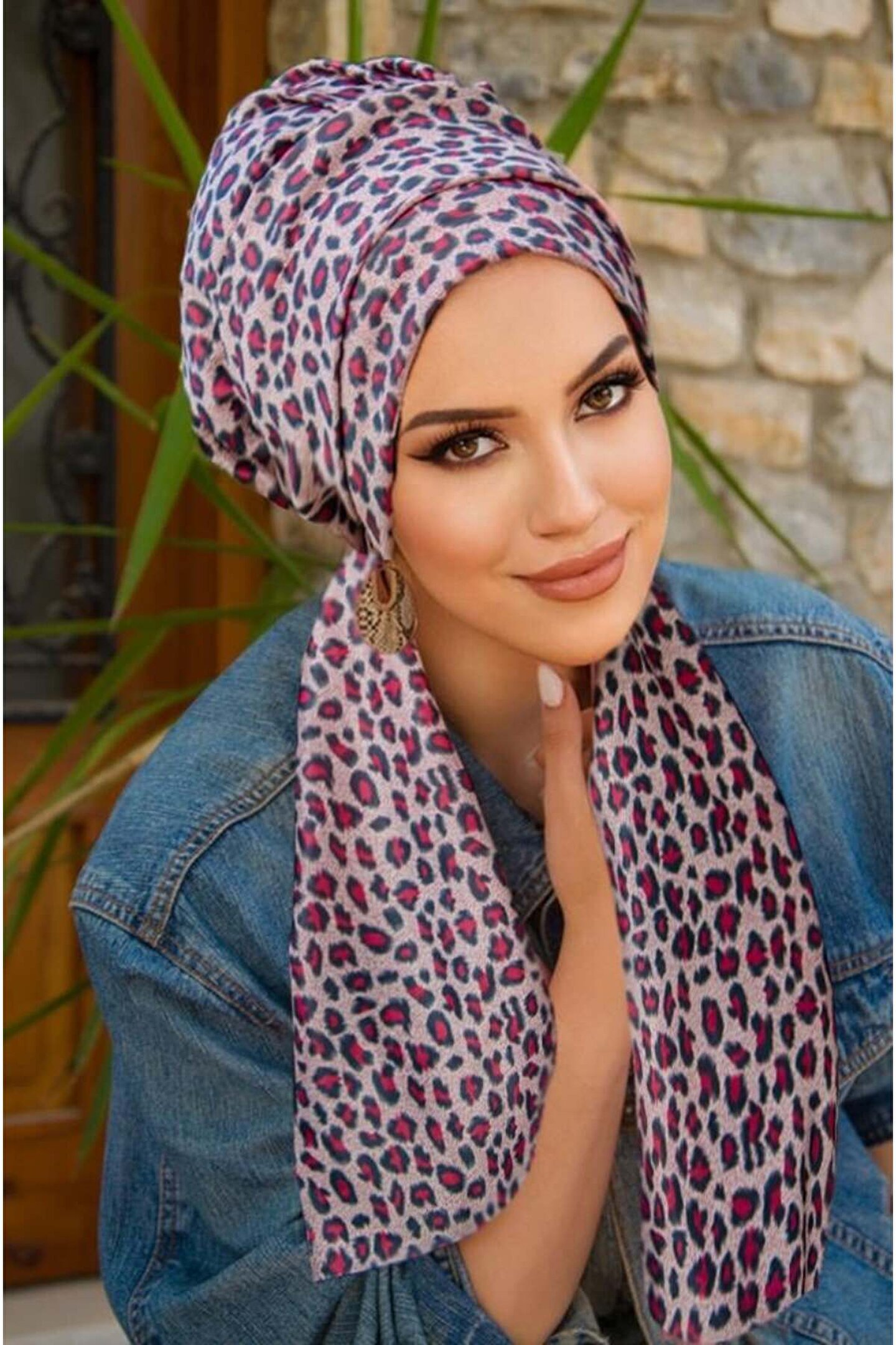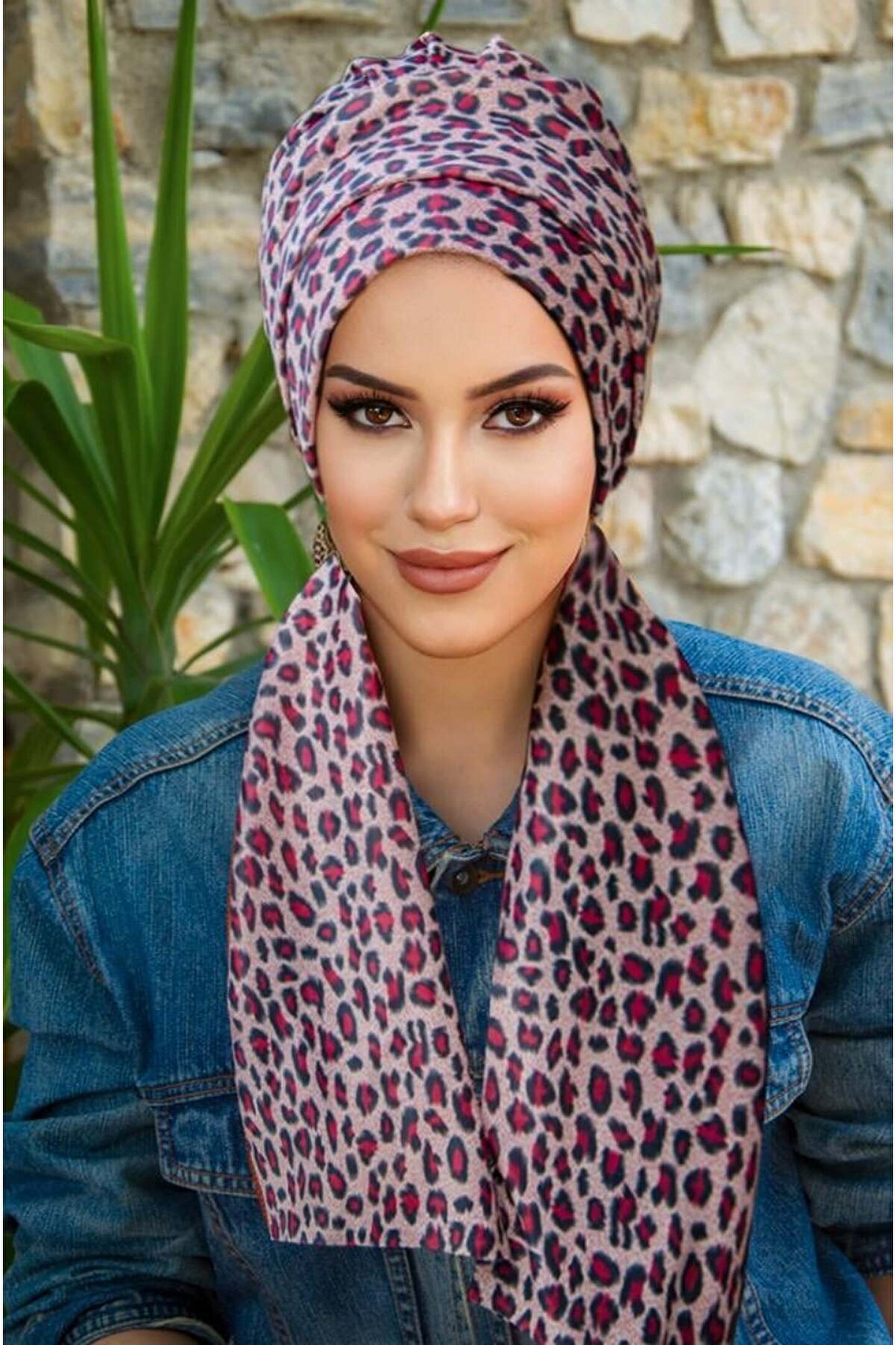 Aişe tesettür Bordo Lepar Desenli Atkılı Bone