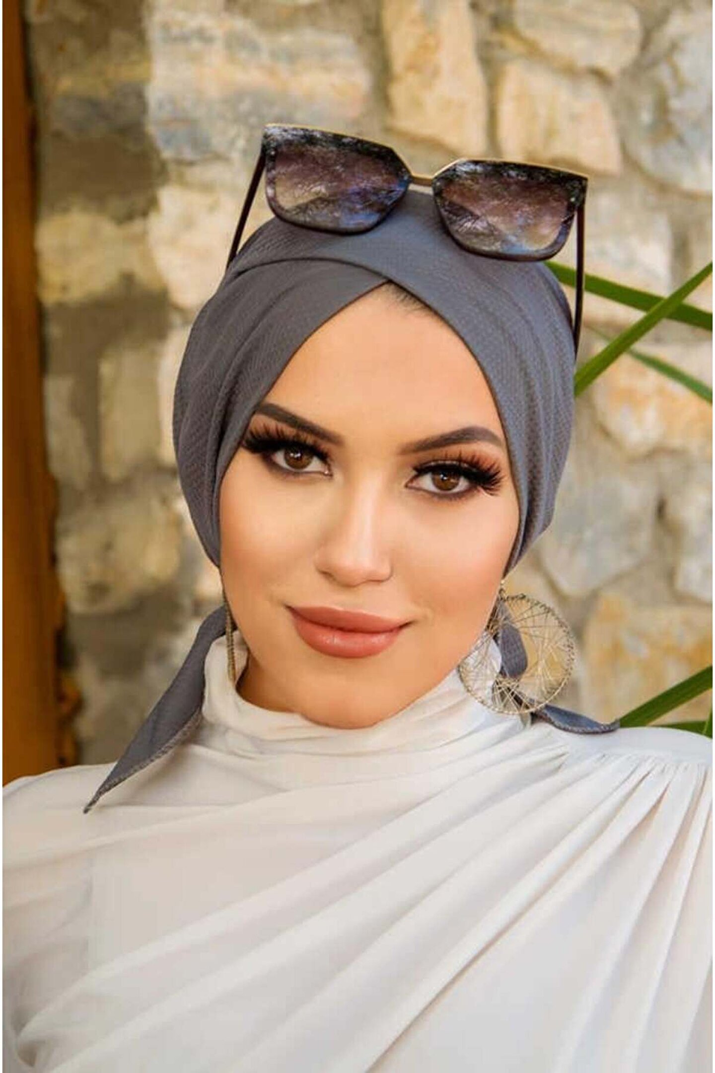 Aişe tesettür Füme Hazır Çapraz Bone