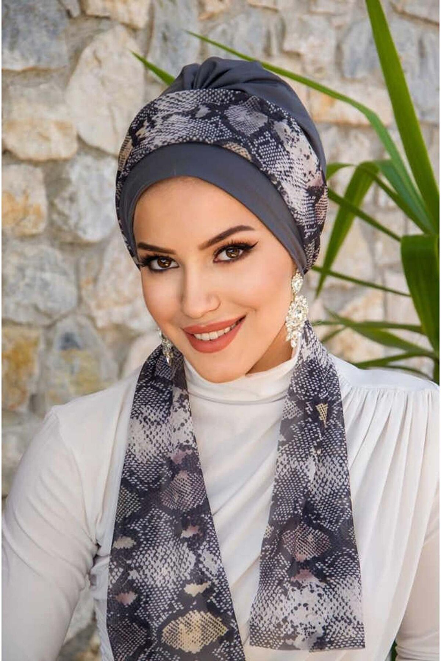 Aişe tesettür Füme Yılan Desen Fularlı Bone