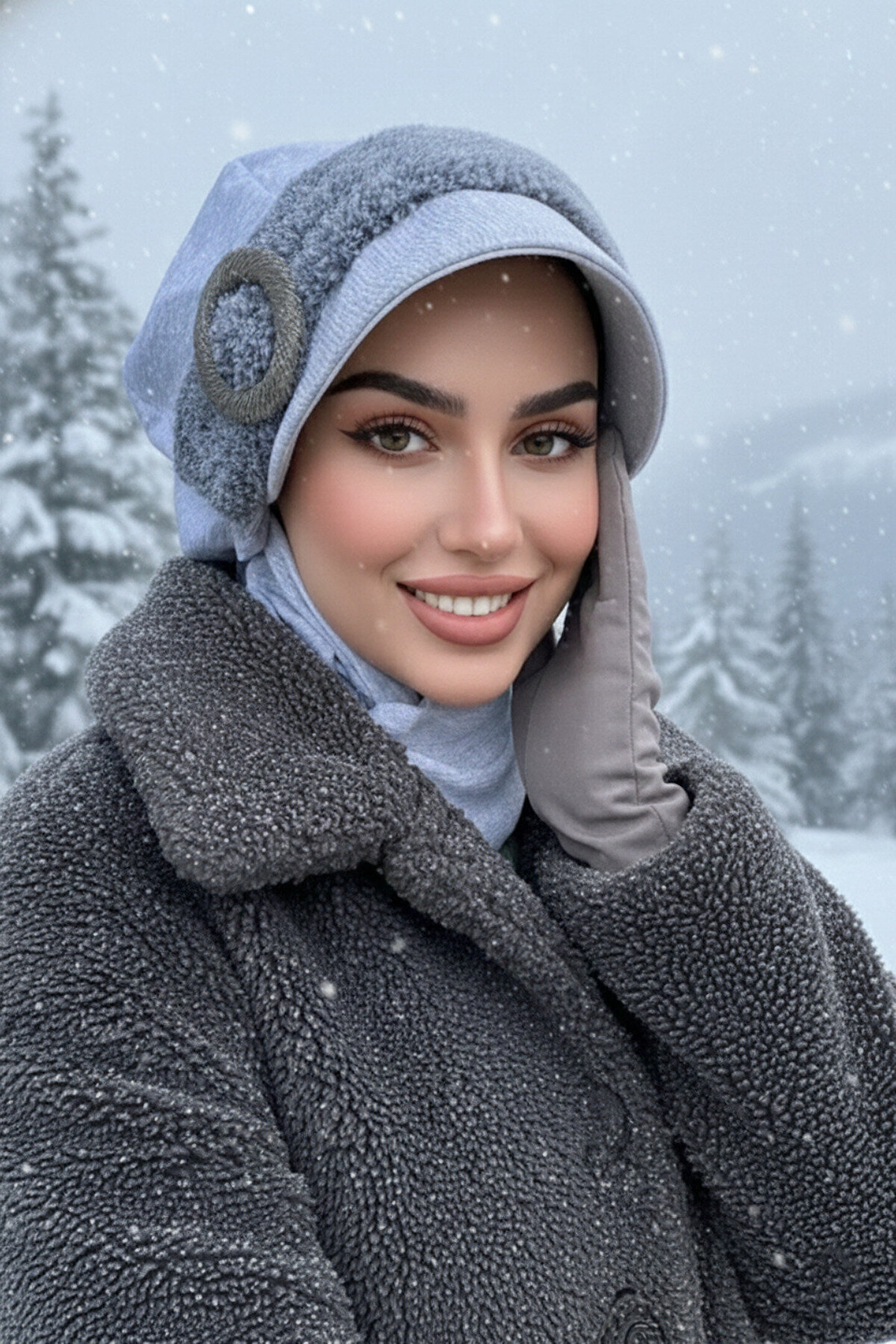 Aişe tesettür Gri Tokalı Tesettür Şapka