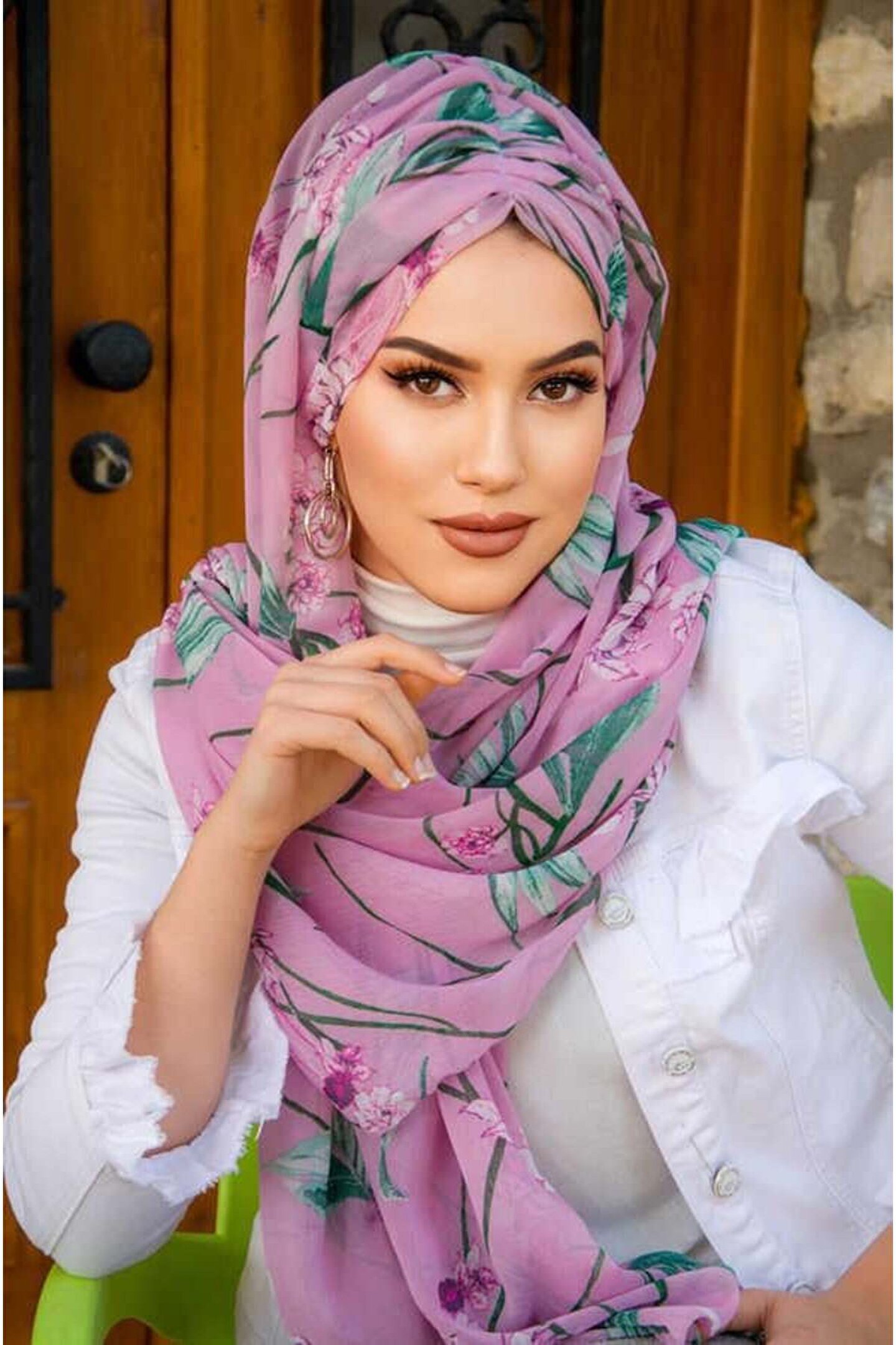 Aişe tesettür Gülkurusu Çiçek Desenli Hazır Şifon Şal