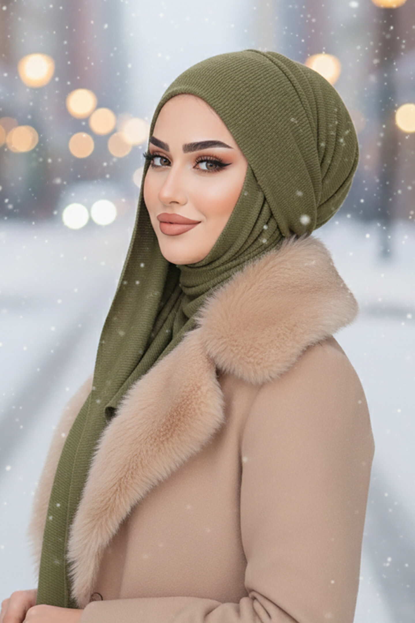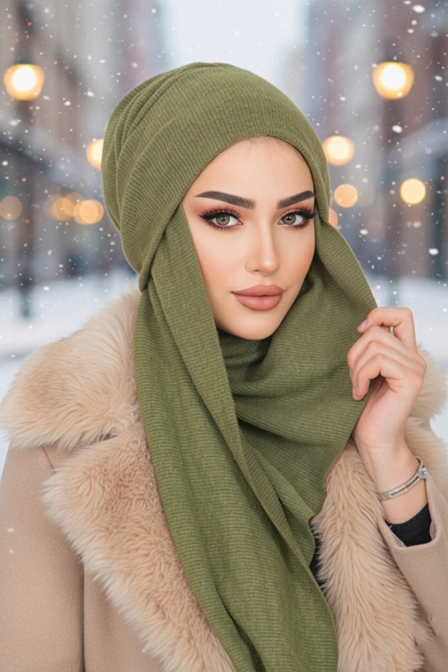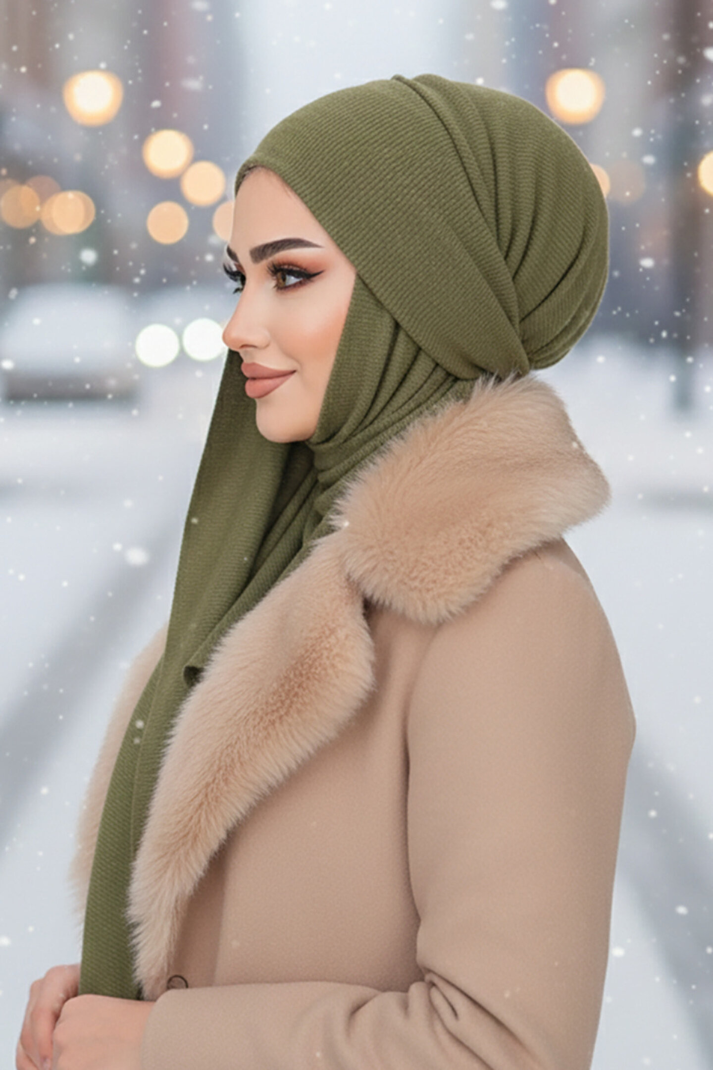 Aişe tesettür Haki Triko Kelebek Bone Şal