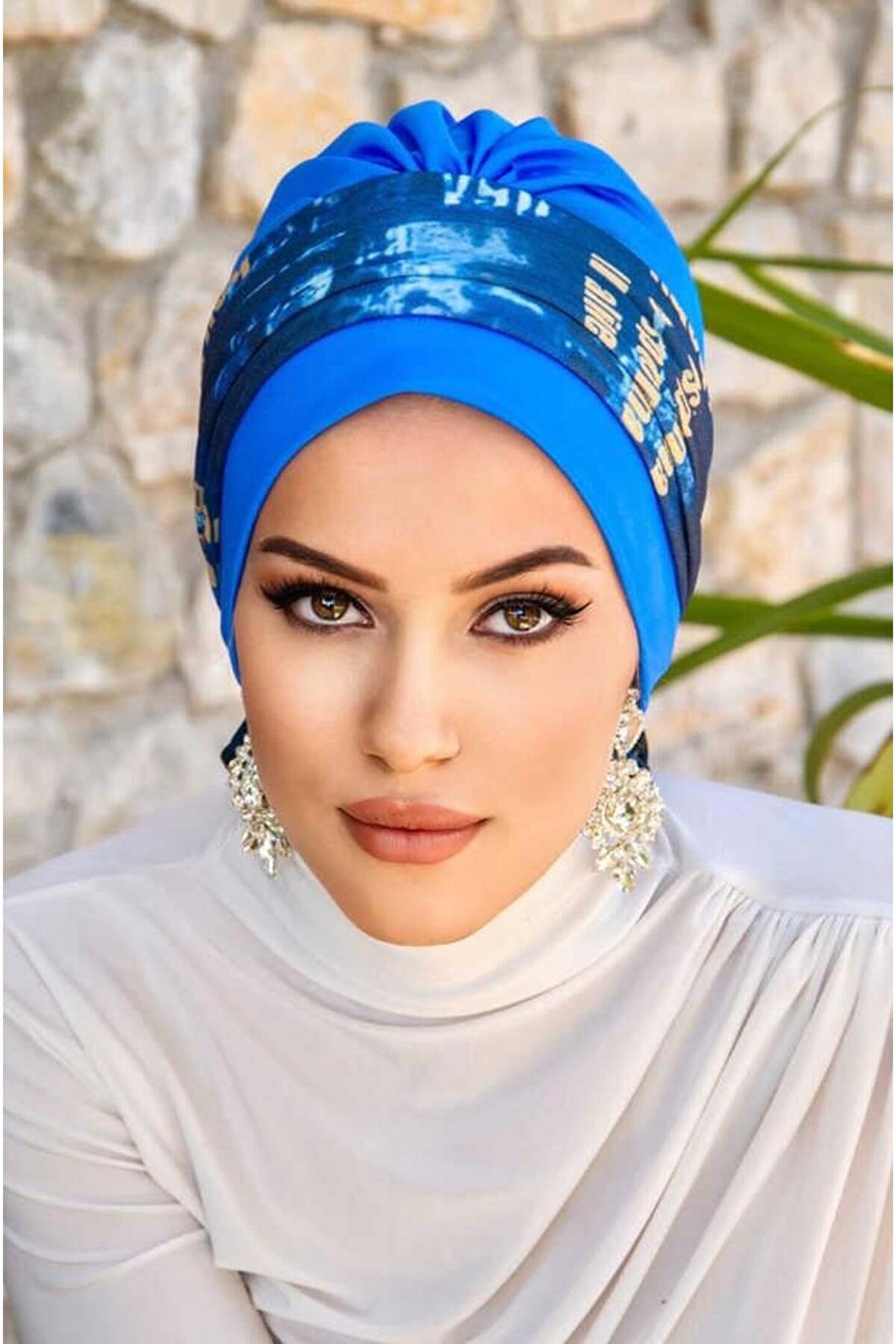 Aişe tesettür İndigo Mavi Puan Desen Bantlı Bone