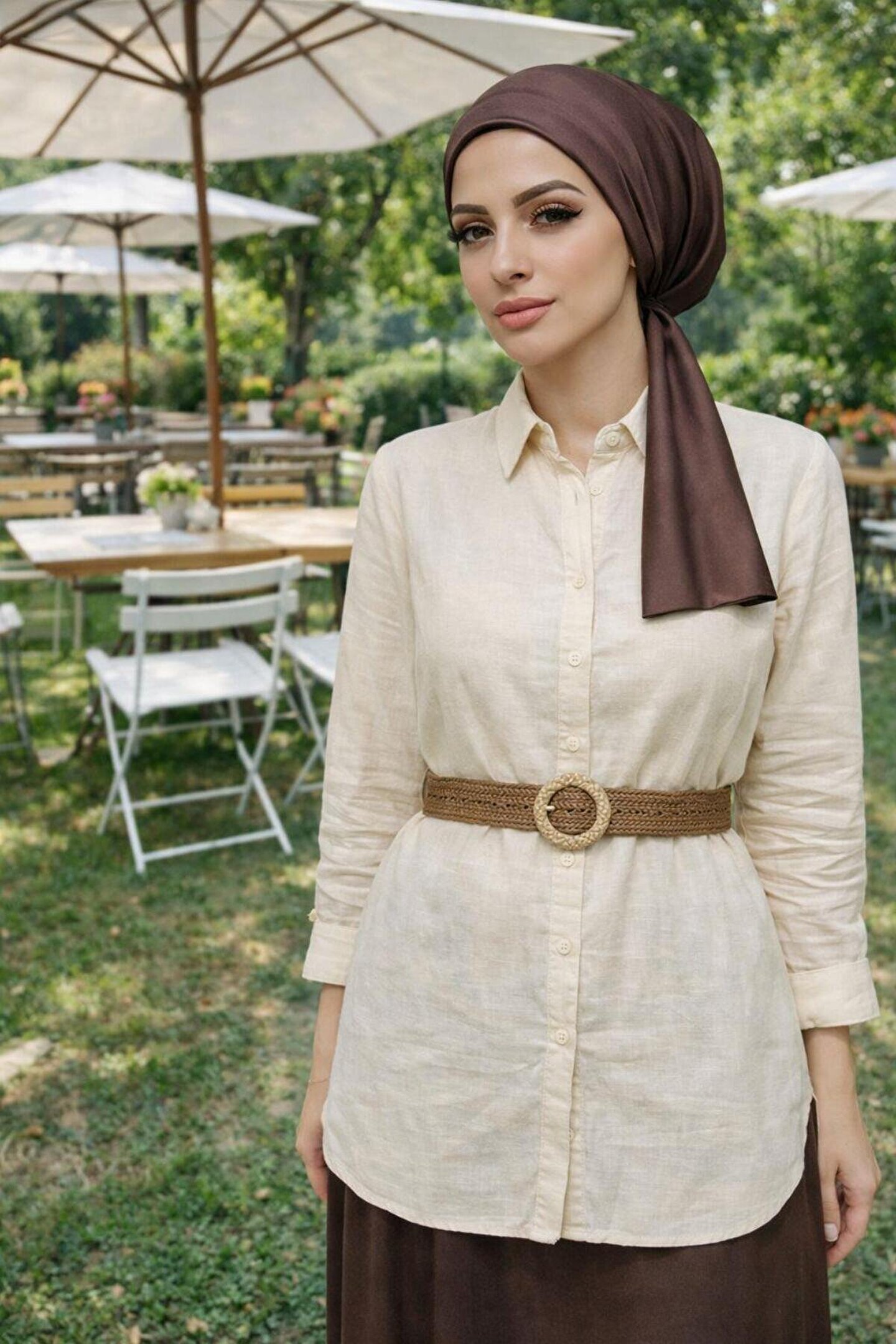 Zamanı kısıtlı ama stilinden ödün vermeyen kadınlar için tasarlanan Kahverengi Eşarp Bone , tesettür giyimde konforun yeni adı! Likralı örme kumaşın yumuşaklığı ve eşarp formundaki dökümlü uçlarıyla, iğne kullanmaya gerek kalmadan saniyeler içinde şık bir görünüm elde edebilirsiniz.