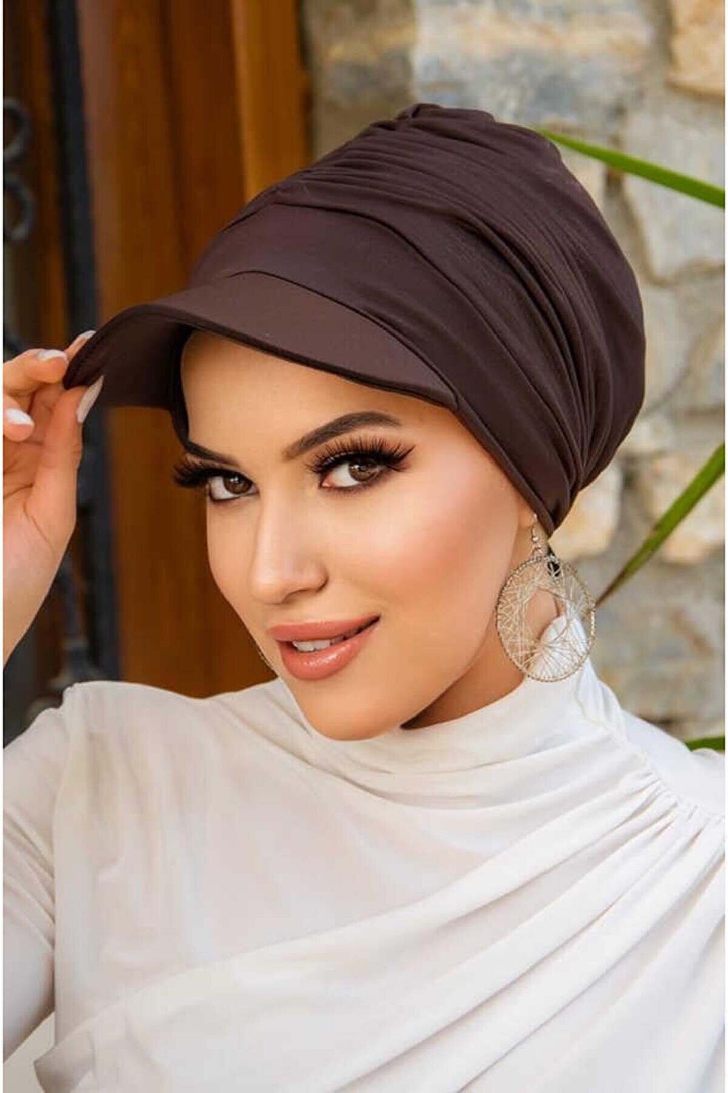 Aişe tesettür Kahverengi Havuz & Deniz Şapkası Mayo Üstüne Kullanılabilir