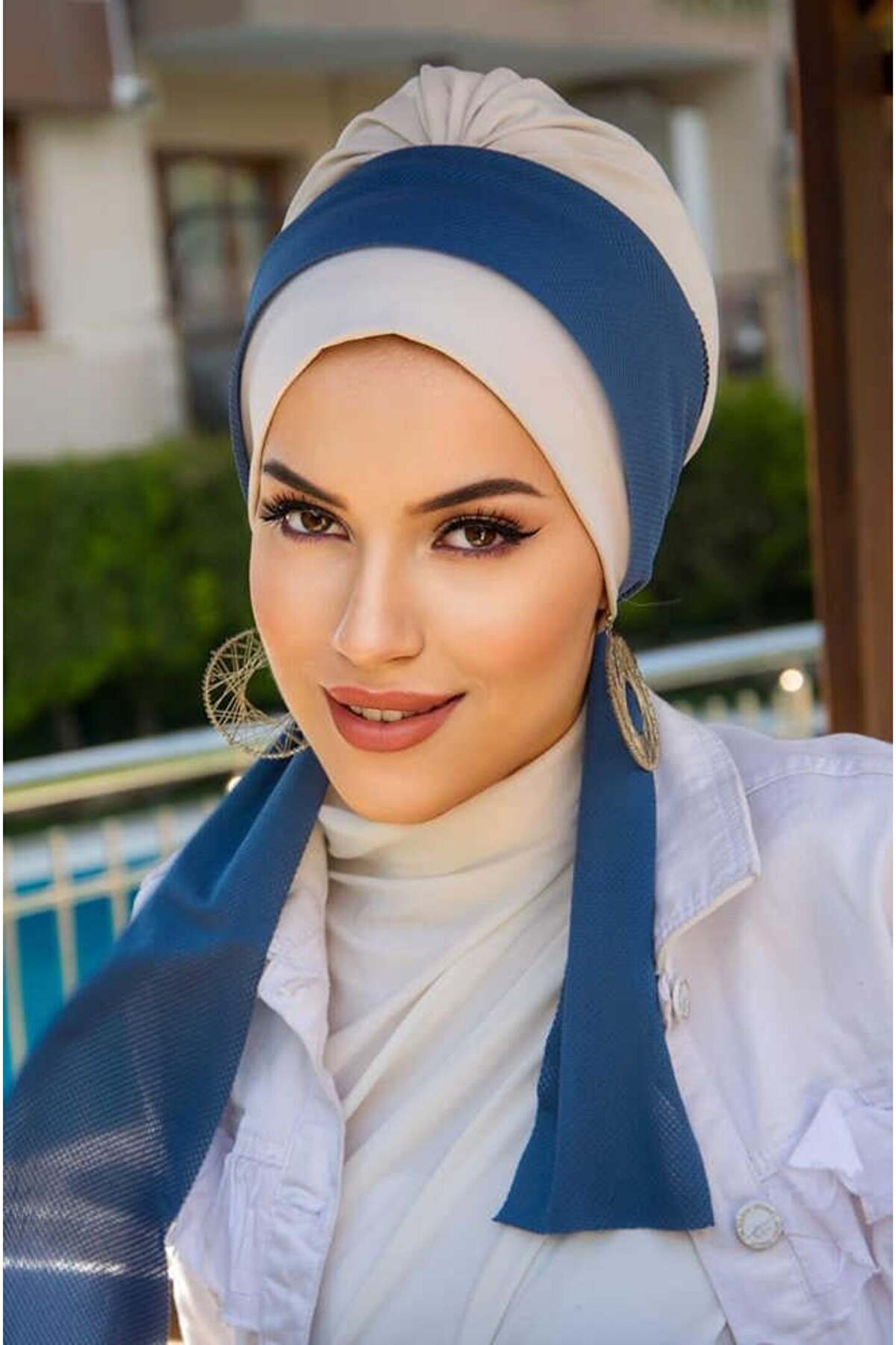 Aişe tesettür Kemik İndigo Fularlı Bone