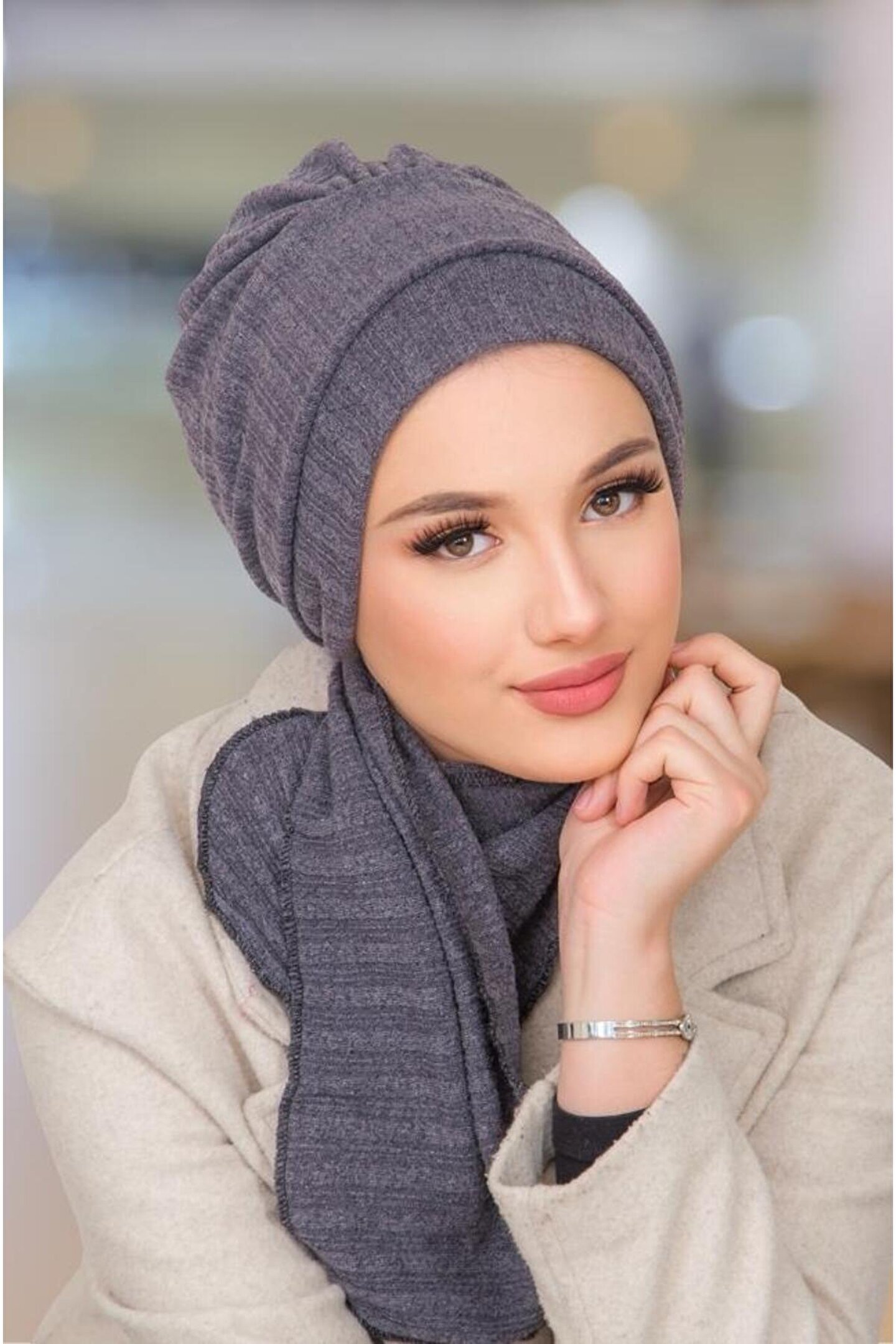 Aişe tesettür Koyu Gri Triko Atkılı Tesettür Bone