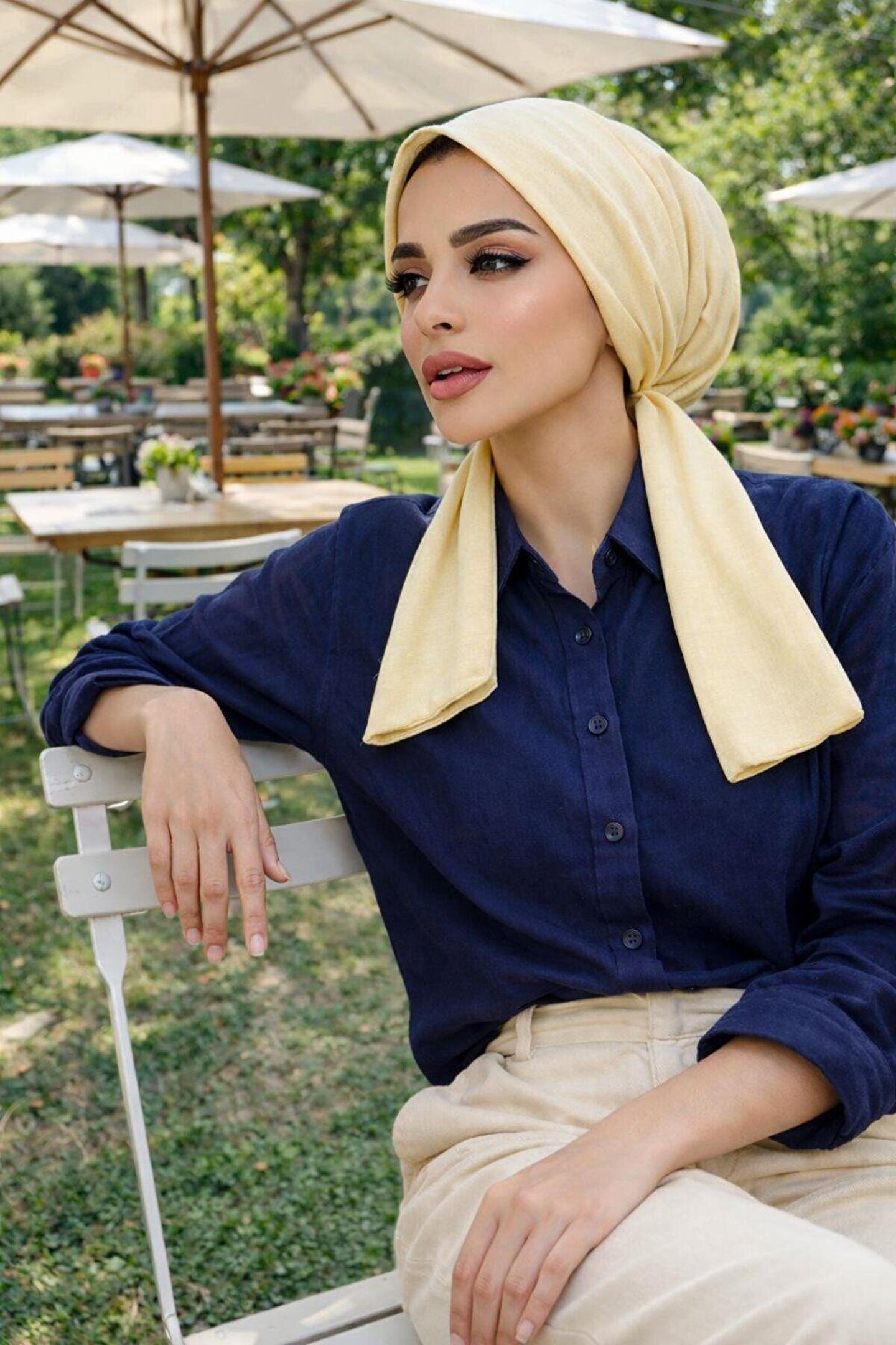 Ayna karşısında vakit kaybetmeye son! Krem Eşarp Bone, penye kumaşın eşsiz konforunu klasik eşarp şıklığıyla birleştiriyor. "Tak ve çık" tasarımıyla hayatınızı kolaylaştırırken, kremin zamansız tonuyla her mevsim en harika kombinlerinize eşlik ediyor.