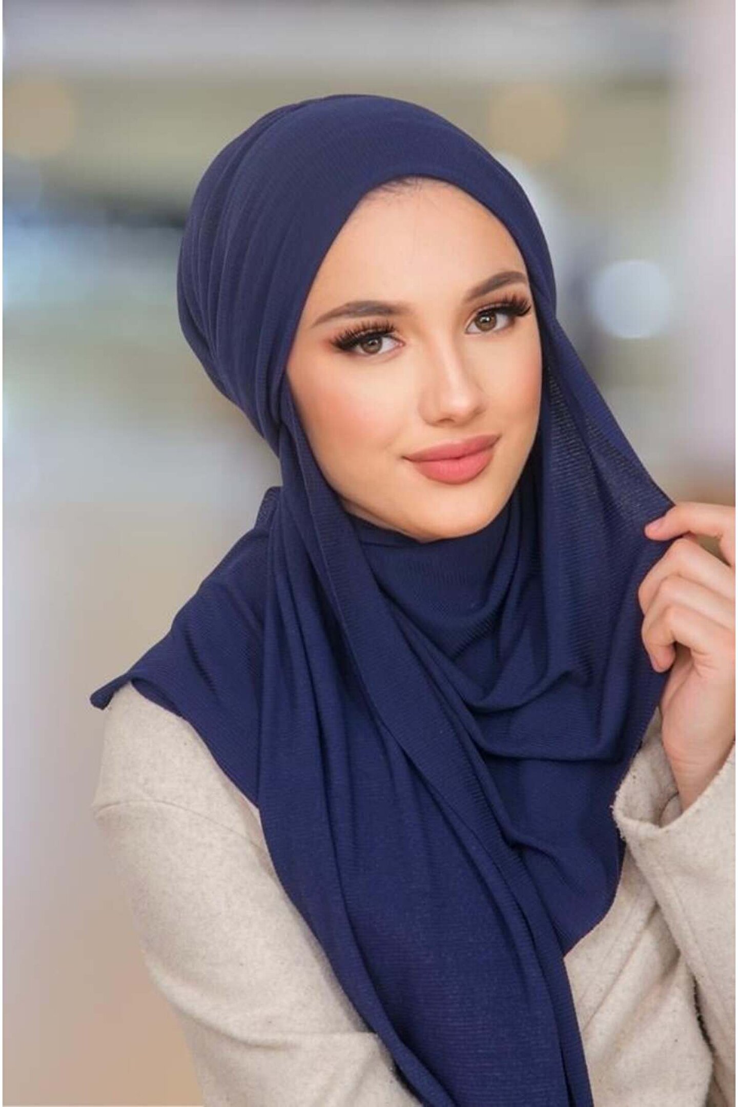 Aişe tesettür Lacivert Kelebek Bone Şal