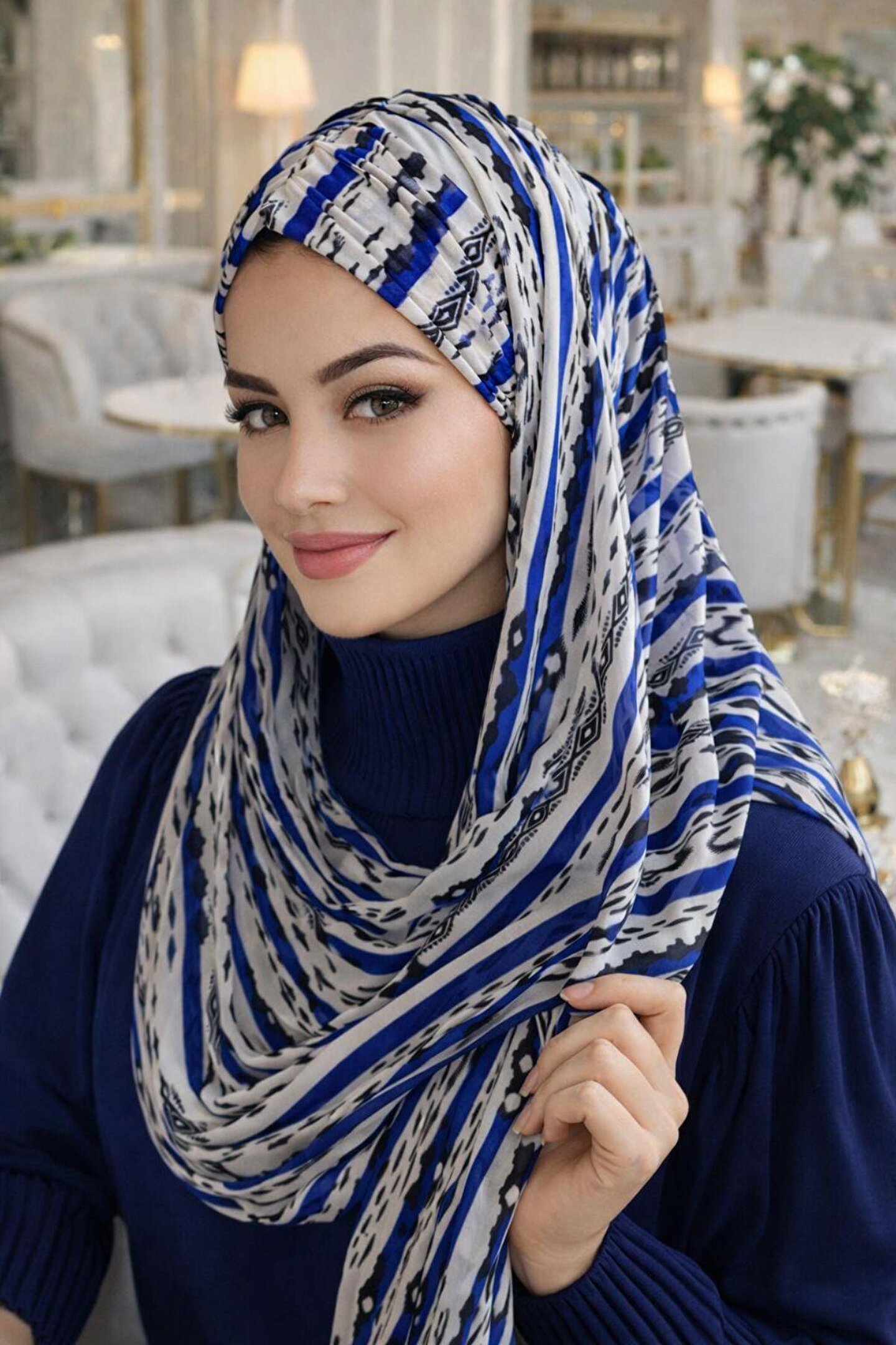 Yazın kavurucu sıcaklarında hem şık hem de serin kalmak artık çok kolay! Mavi Beyaz Desenli Hazır Şal, dijital tül kumaşının hafifliği ve marin esintili desenleriyle stilinizi tazelemeye geliyor. Enseden geçirmeli pratik yapısı sayesinde, iğneleme veya karmaşık bağlama yöntemleriyle uğraşmadan saniyeler içinde dışarı çıkmaya hazır olacaksınız.