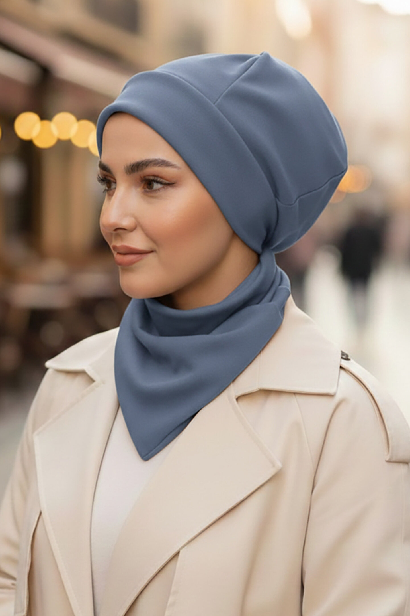 Aişe tesettür Nude Serisi Mavi Bere Bone ve Etol Takım