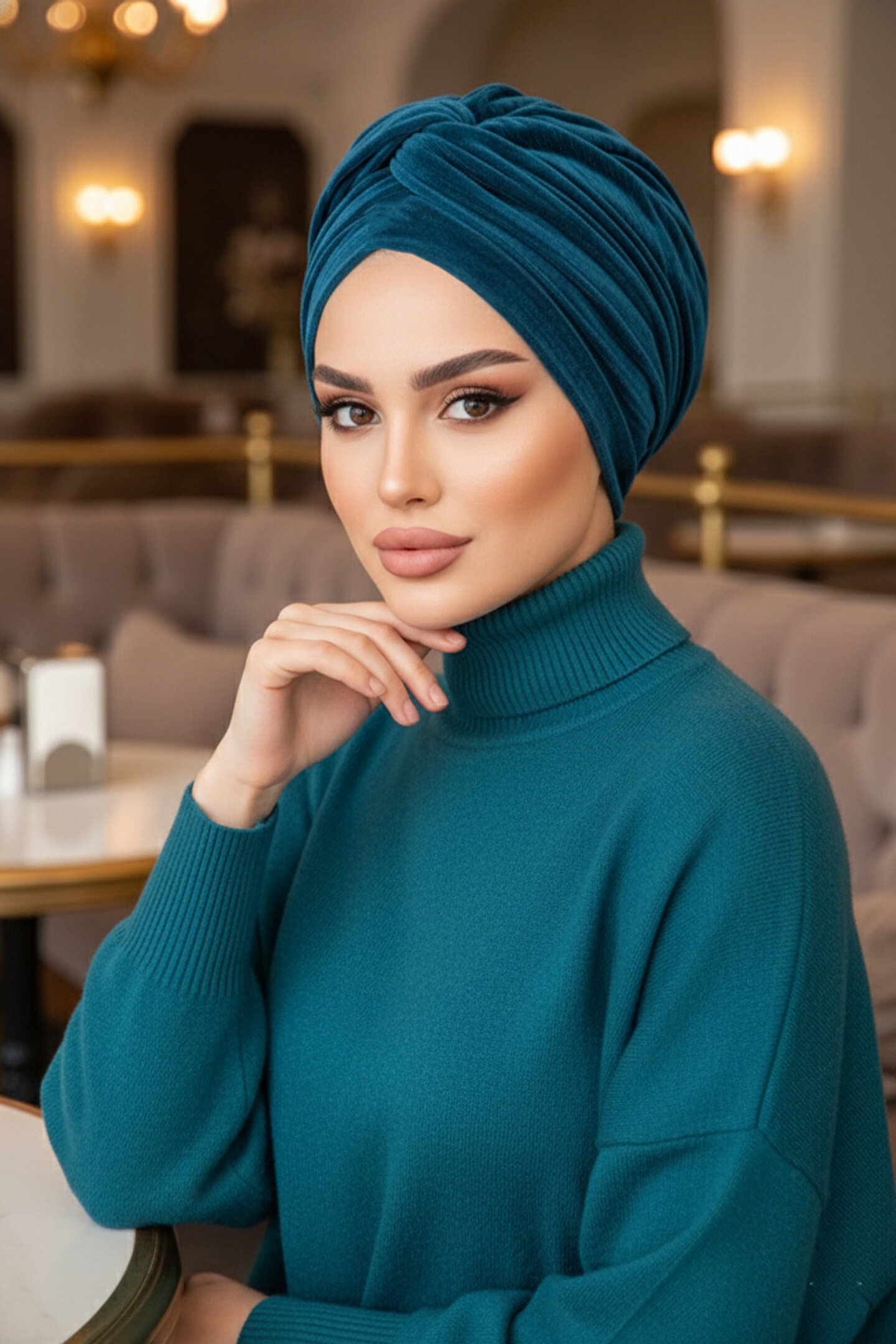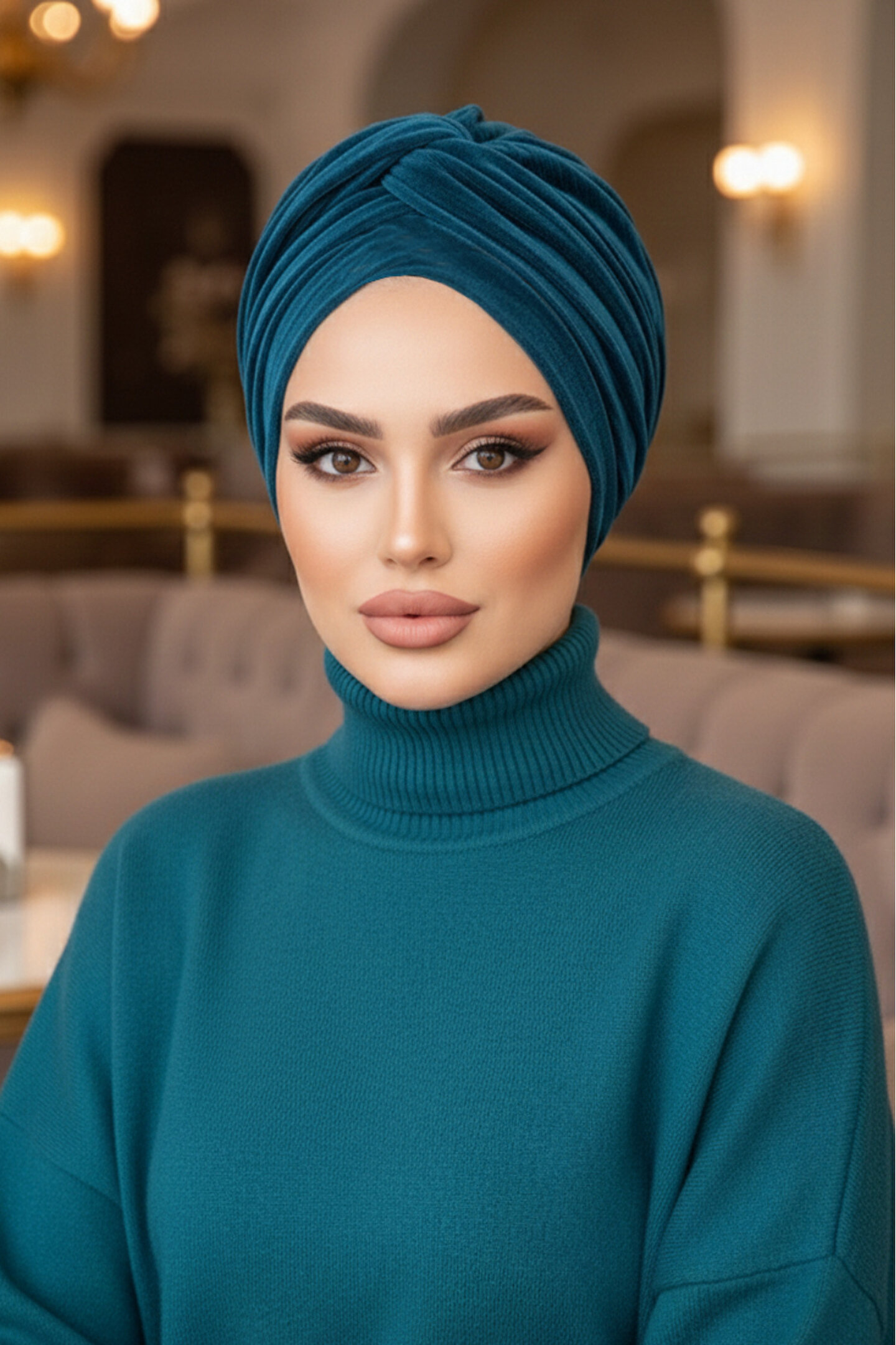Aişe tesettür Petrol Kadife Burgu Detaylı Bone