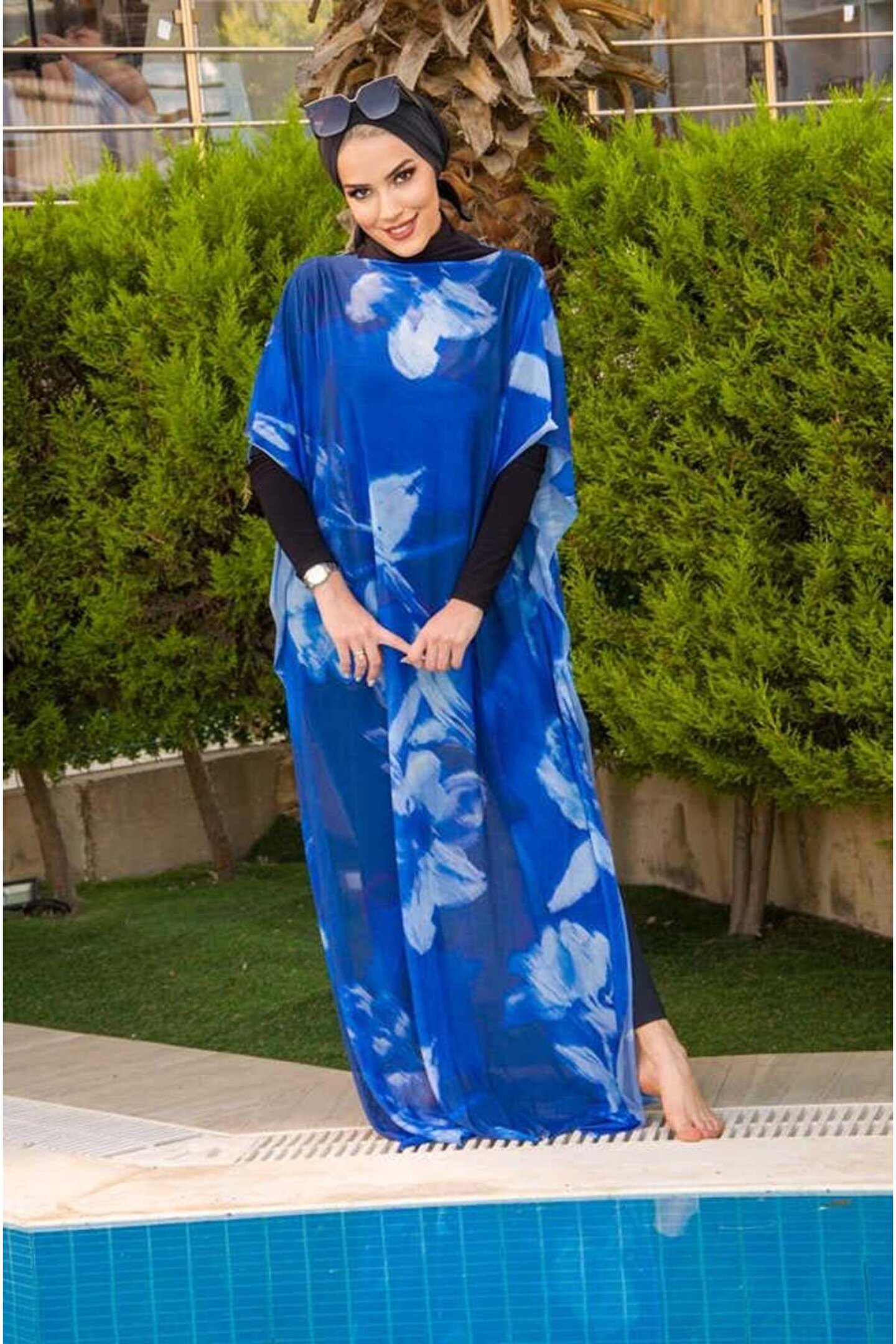 Aişe tesettür Saks Mavi Desenli Tesettür Pareo