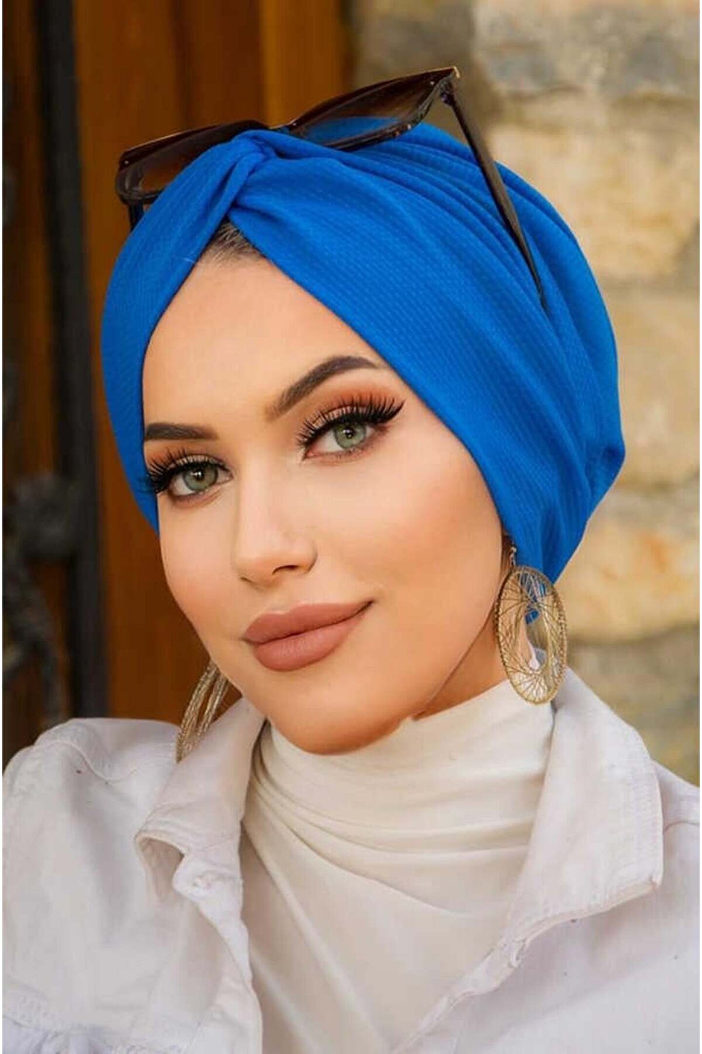 Aişe tesettür Saks Mavi Hazır Burgu Düğüm Bone