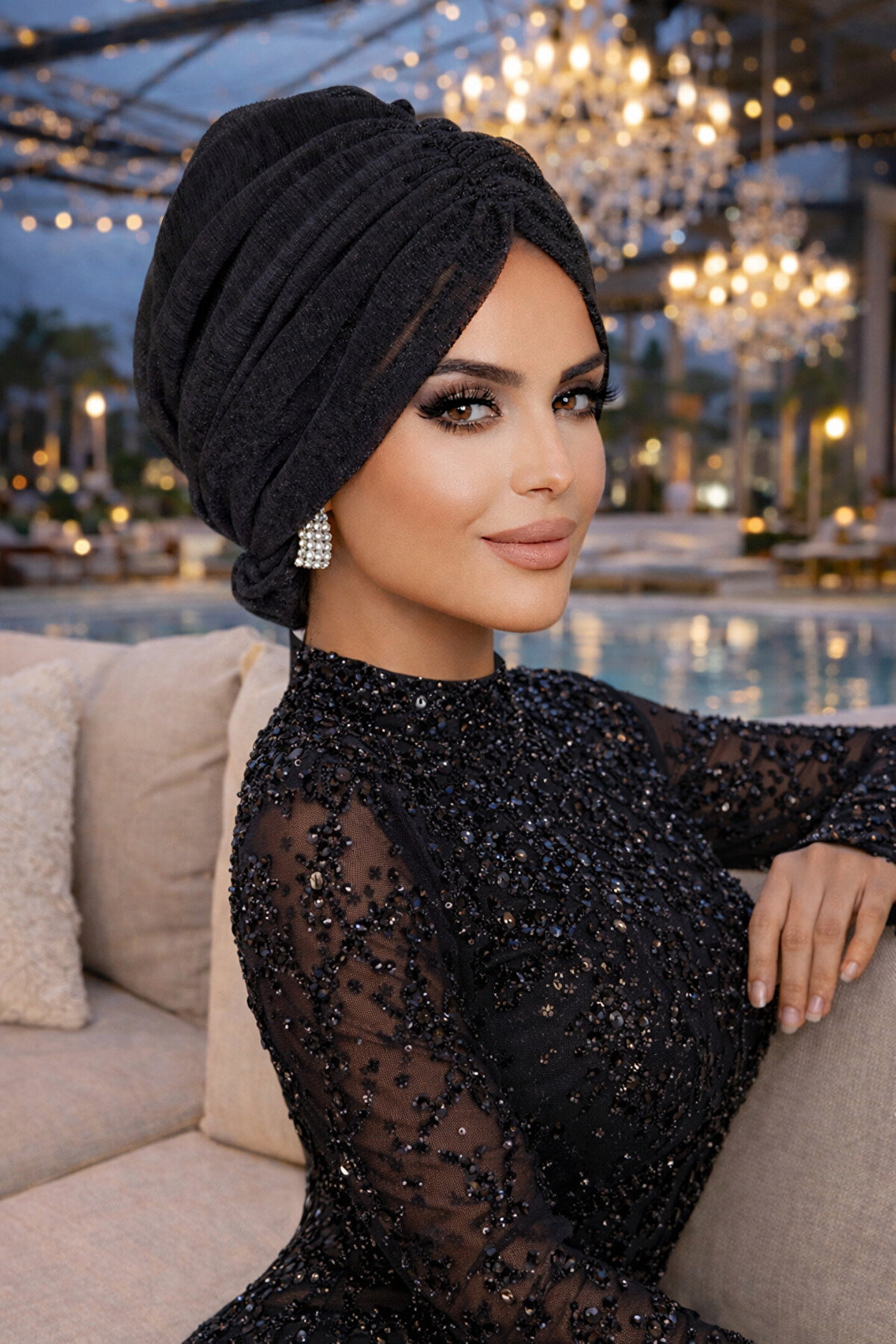 Ayna karşısında saatlerce şal bağlama derdine son! Siyah Piliseli Abiye Tokalı Bone, özel davetlerde, nişan ve düğünlerde zarafeti pratiklikle buluşturuyor. Pilise detaylı tül kumaşın hareketli yapısı ve enseden bağlanan şık tokasıyla, iğne kullanmadan kusursuz bir görünüme saniyeler içinde ulaşabilirsiniz.