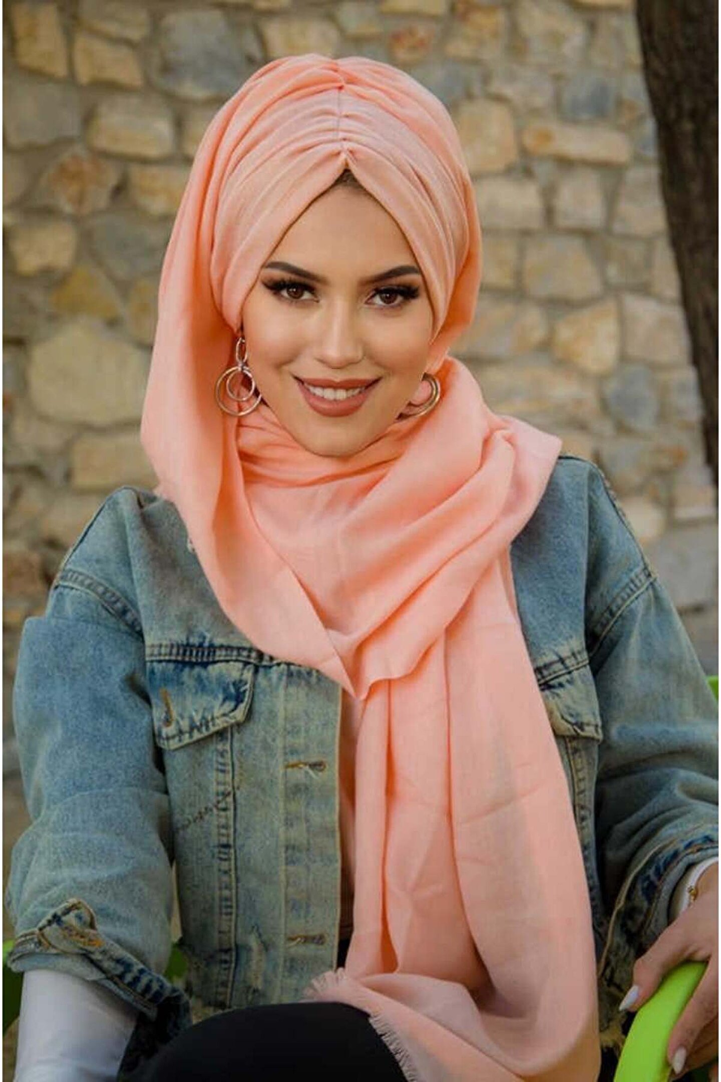 Aişe tesettür Somon Büzgülü Hazır Şal