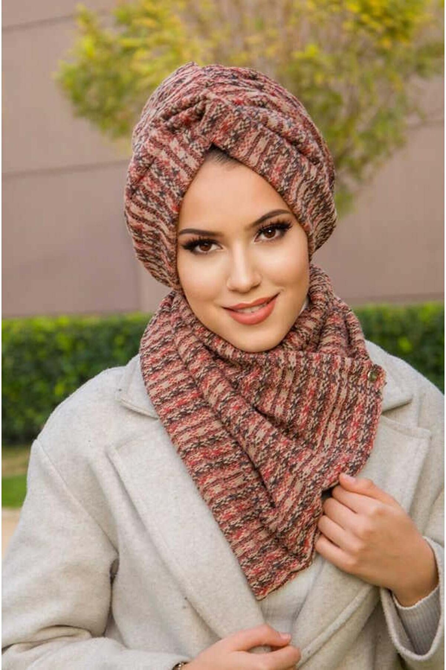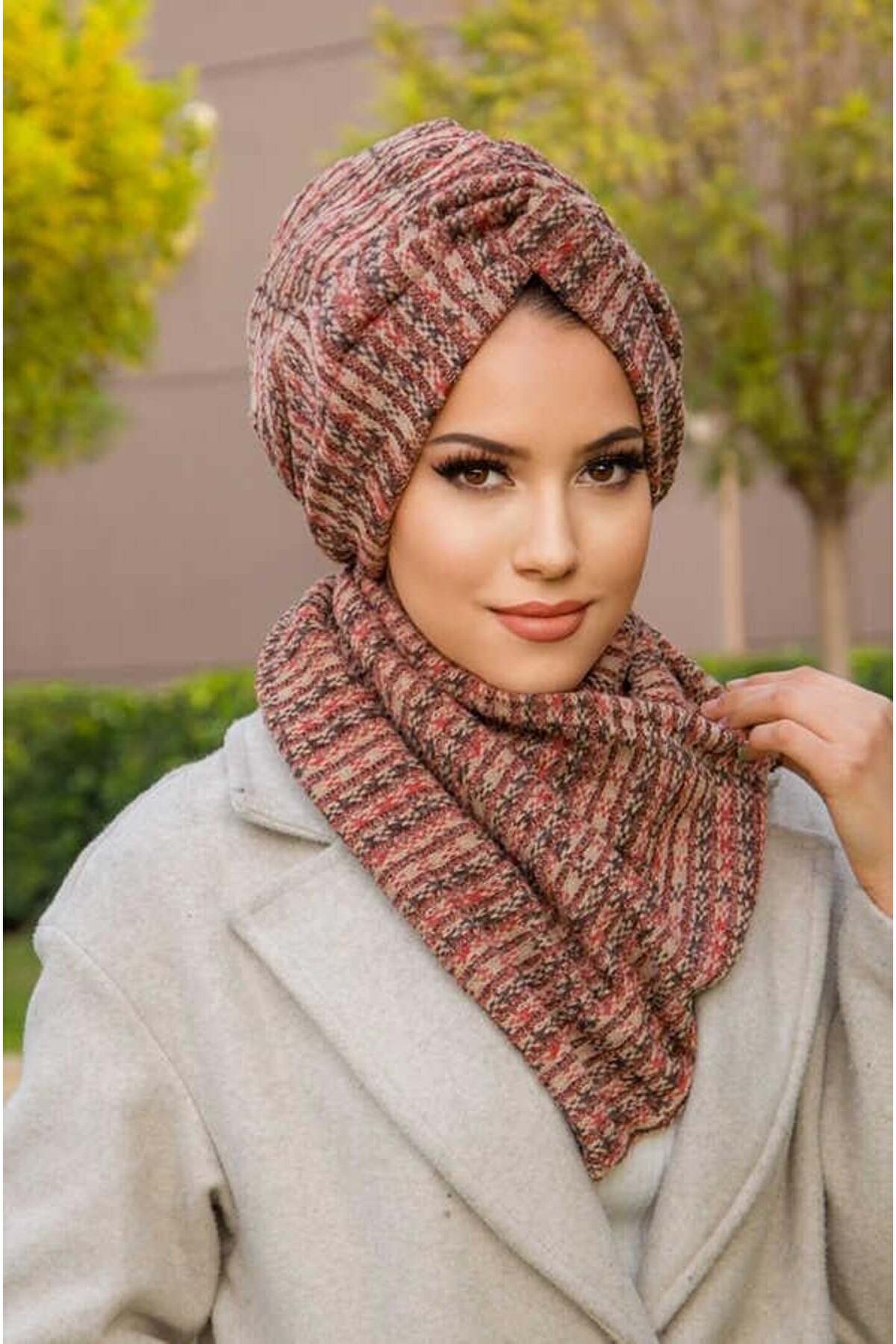 Aişe tesettür Taba Triko Kışlık Burgu Bone Ve Etol Takım