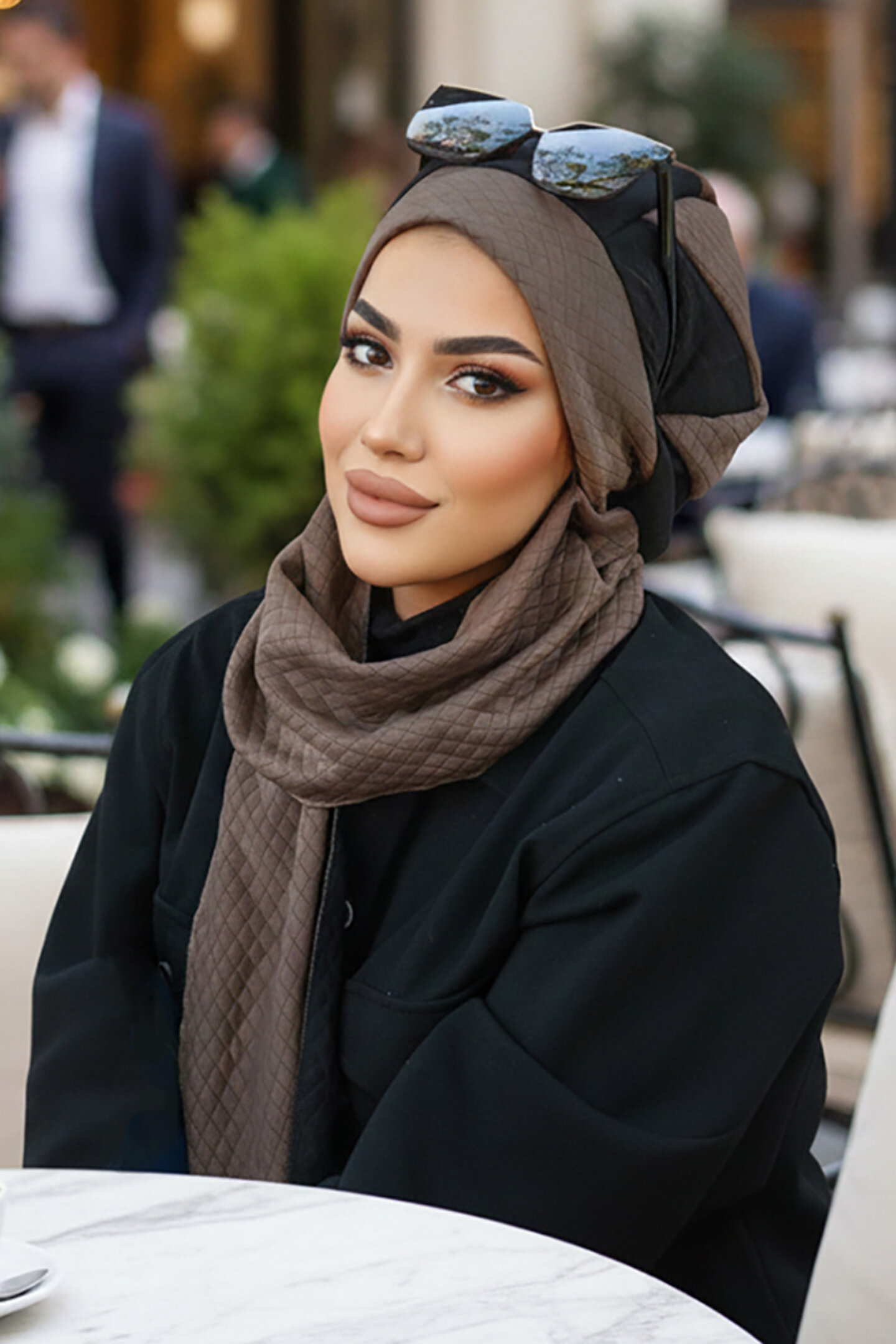 Aişe tesettür Vizon Siyah Kapitone Tesettür Bere