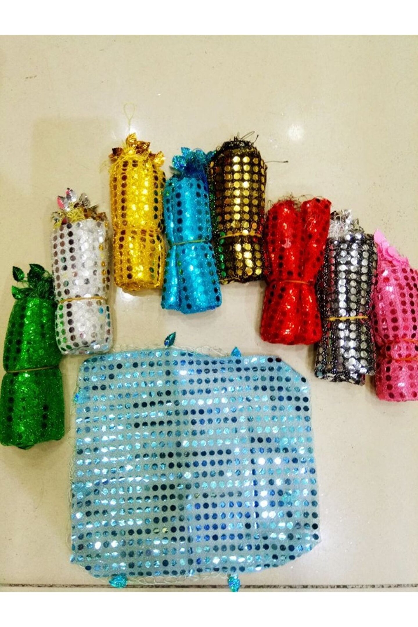 Süslü Metal Zilli Tef & Pullu Halay Mendili & 1 Adet Yeni Hediyelik Dünyam pullu halay mendili modelidir.; Karma renkli mendil modeli siparişi verebilirsiniz.; ; Satıcıya soru sor ve ürün bölümünde "soru sor" kısmından ulaşabilirsiniz.; ; 20cm kına mendili dir.; ; Peket İçeriği: Karışık renkli pullu halay mendili.; ; Kına malzemeleri , düğün, sünnet, nişan, söz, baby shower, parti ve organizasyon ürünü dür.; ; NOT:Halay mendillerini elimizde stok durumuna göre karma renkli gönderiyoruz.; Düğün ve kına organizasyonlarında magnet, hediyelik veya masa süsü olarak tercih edilebilecek özel bir üründür.; Şık tasarımı ve uygun fiyatıyla dikkat çeker.; Kına gecesi, nişan ve nikah gibi özel günlerde masa üstü dekoru veya anı köşesi olarak kullanılabilir.; Misafirlerinize unutulmaz bir anı bırakmak için ideal bir seçimdir.; **Anahtar kelimeler:** mıknatıs, kına hediyelik, düğün süsleri, nikah magneti, masa süsü, hatıra magnet, organizasyon aksesuarı