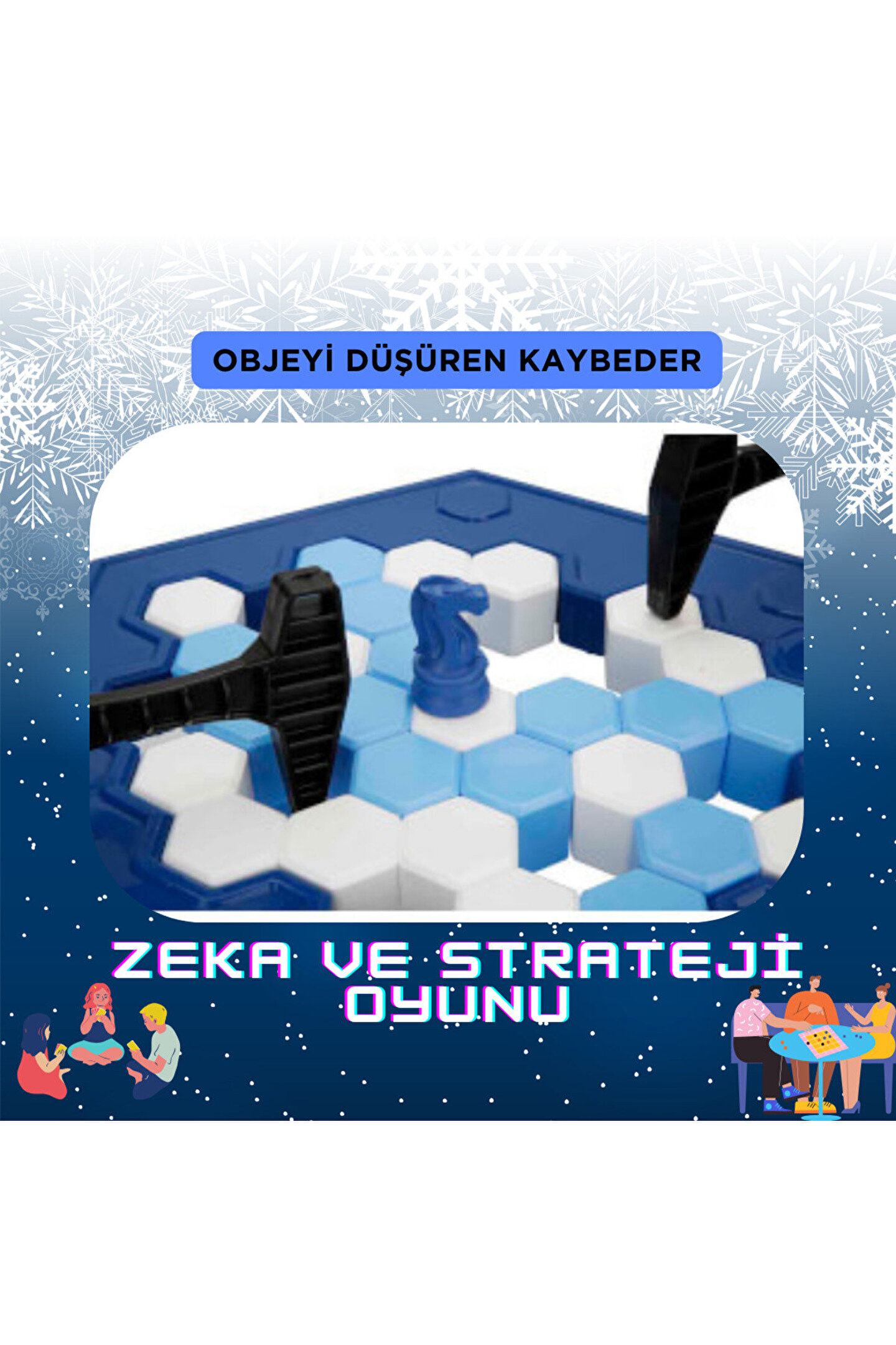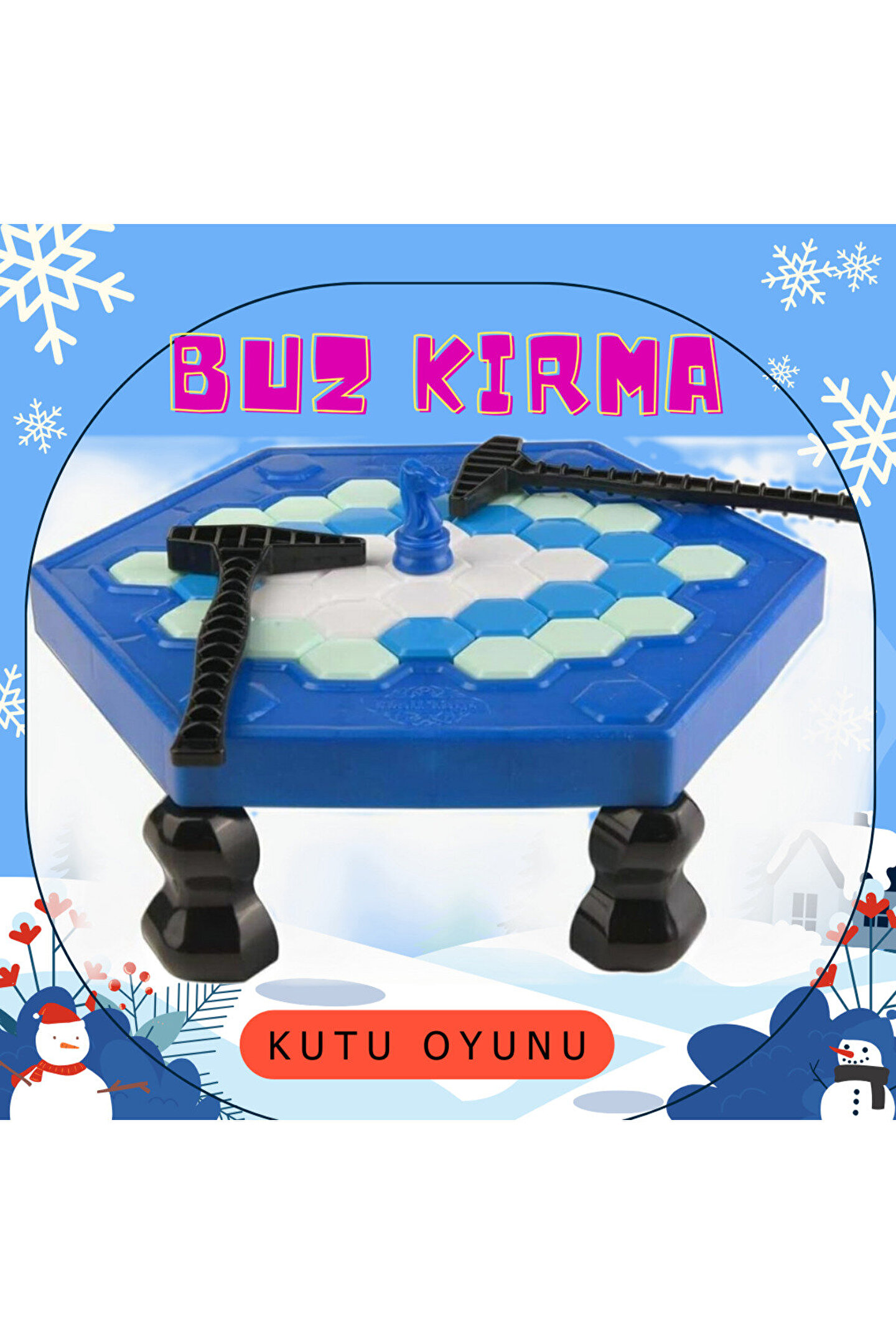 Buz Kırma OYUNU iki kişi ile oynanan bir denge oyunudur. Oyunun içeriği, küçük plastik petekler ve bu petekleri yerleştirmek için bir oyun çerçevesini içerir. Oyunun temelini oluşturan piyon, peteklerin tam ortasına yerleştirilir.Oyuncular, küçük plastik çekiçlerle peteklere vurarak dengeyi sağlamaya çalışırlar. Ancak, temel amaç petekleri düşürürken piyonu ayakta tutmaktır.; Oyun, oyuncuların el becerilerini, koordinasyon yeteneklerini ve stratejik düşünme becerilerini geliştirmelerine yardımcı olmayı amaçlayan eğlenceli bir denge oyunudur.; Oyunun heyecanını artıran bir diğer özellik ise çekiçle yapılan her vuruşun dikkatlice planlanması gerektiğidir.; Oyuncuların petekleri dengede tutarken bir yandan da piyonunu devirmemeye çalışması, strateji ve hızlı karar verme becerilerini geliştirmelerine olanak tanır.; Oyun, eğlenceli rekabetin yanı sıra oyuncular arasında iletişimi teşvik eden bir denge oyunudur. Bu oyun, hem çocukların hem de yetişkinlerin keyif alabileceği bir etkileşim ve beceri oyunu olarak tasarlanmıştır.; Paket İçeriği1 kutu glacier buzullar oyunu;
