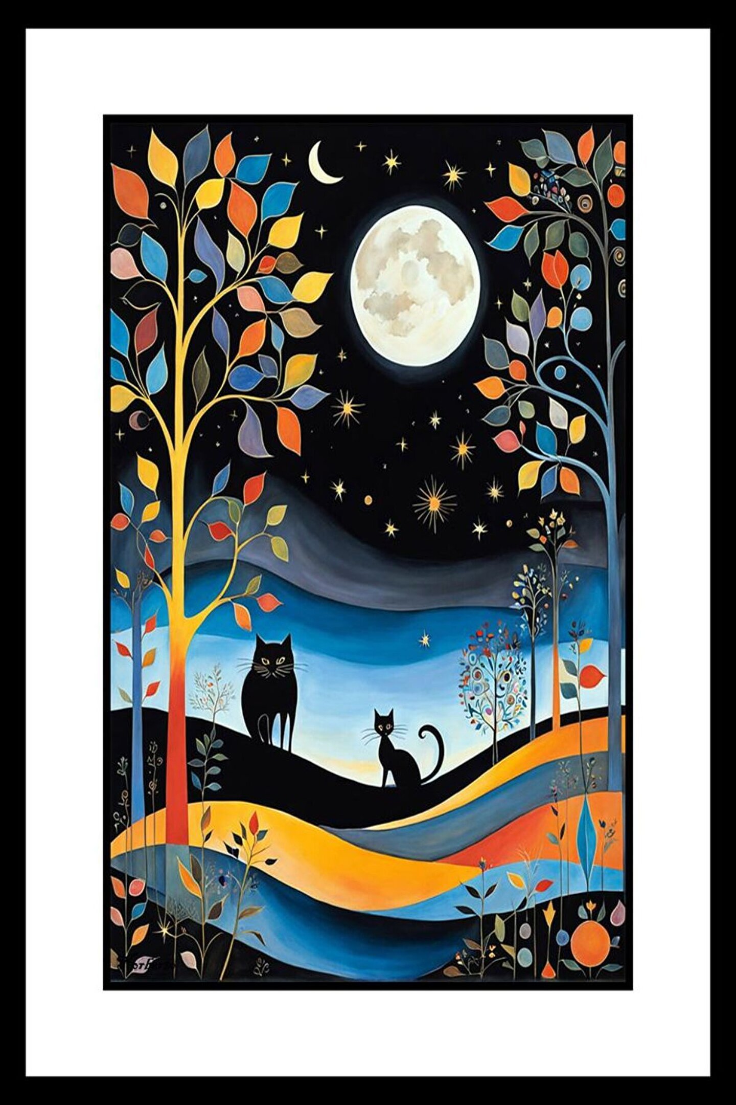 AKTÜEL POSTER Ay Işığı ve Kediler Digital Art ( ÇERÇEVESİZ - ÇERÇEVE YOKTUR ) ( ULTRA HD ) FOLYO AFİŞ - POSTER