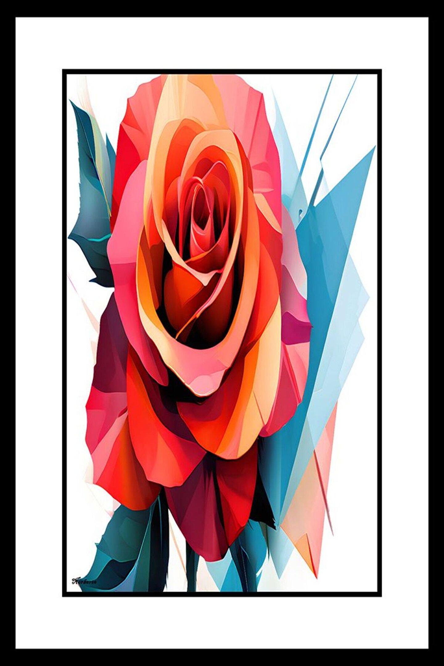 AKTÜEL POSTER Büyük Yapraklı Gül Digital Art ( ÇERÇEVESİZ - ÇERÇEVE YOKTUR ) ( ULTRA HD ) FOLYO AFİŞ - POSTER