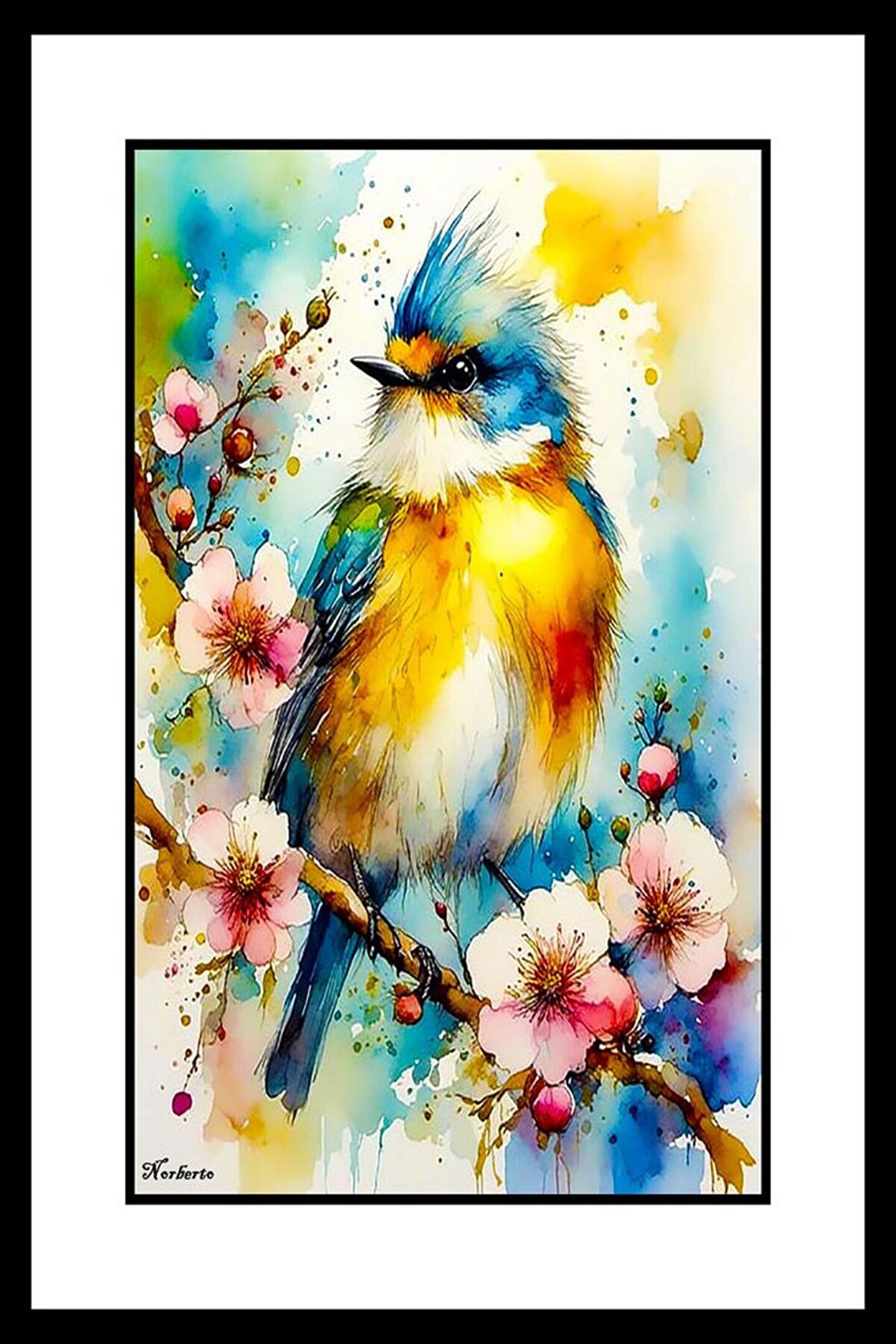 AKTÜEL POSTER Çiçekler ve Minik Kuş Digital Art ( ÇERÇEVESİZ - ÇERÇEVE YOKTUR ) ( ULTRA HD ) FOLYO AFİŞ - POSTER