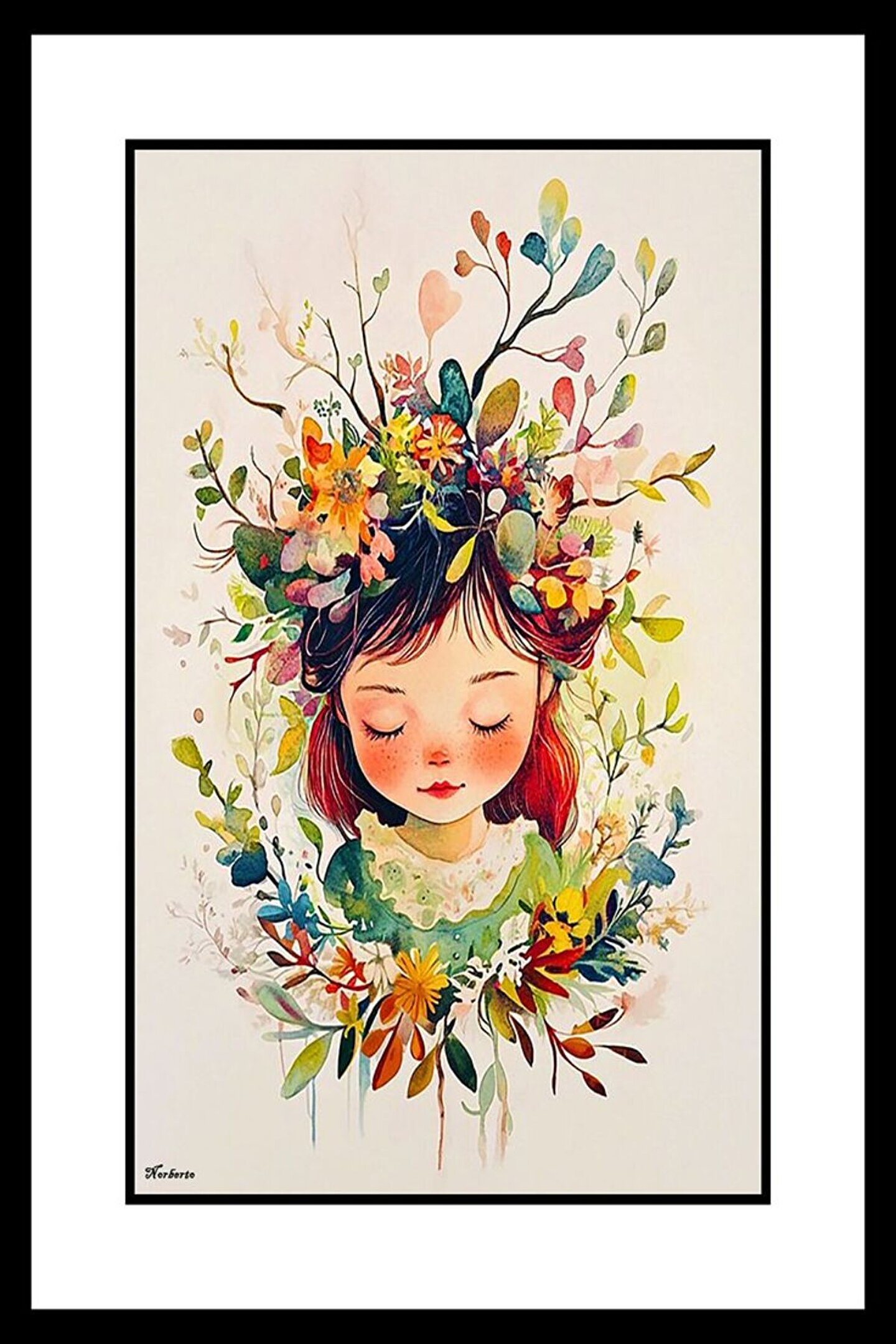 AKTÜEL POSTER Çiçekli Kız Digital Art ( ÇERÇEVESİZ - ÇERÇEVE YOKTUR ) ( ULTRA HD ) FOLYO AFİŞ - POSTER