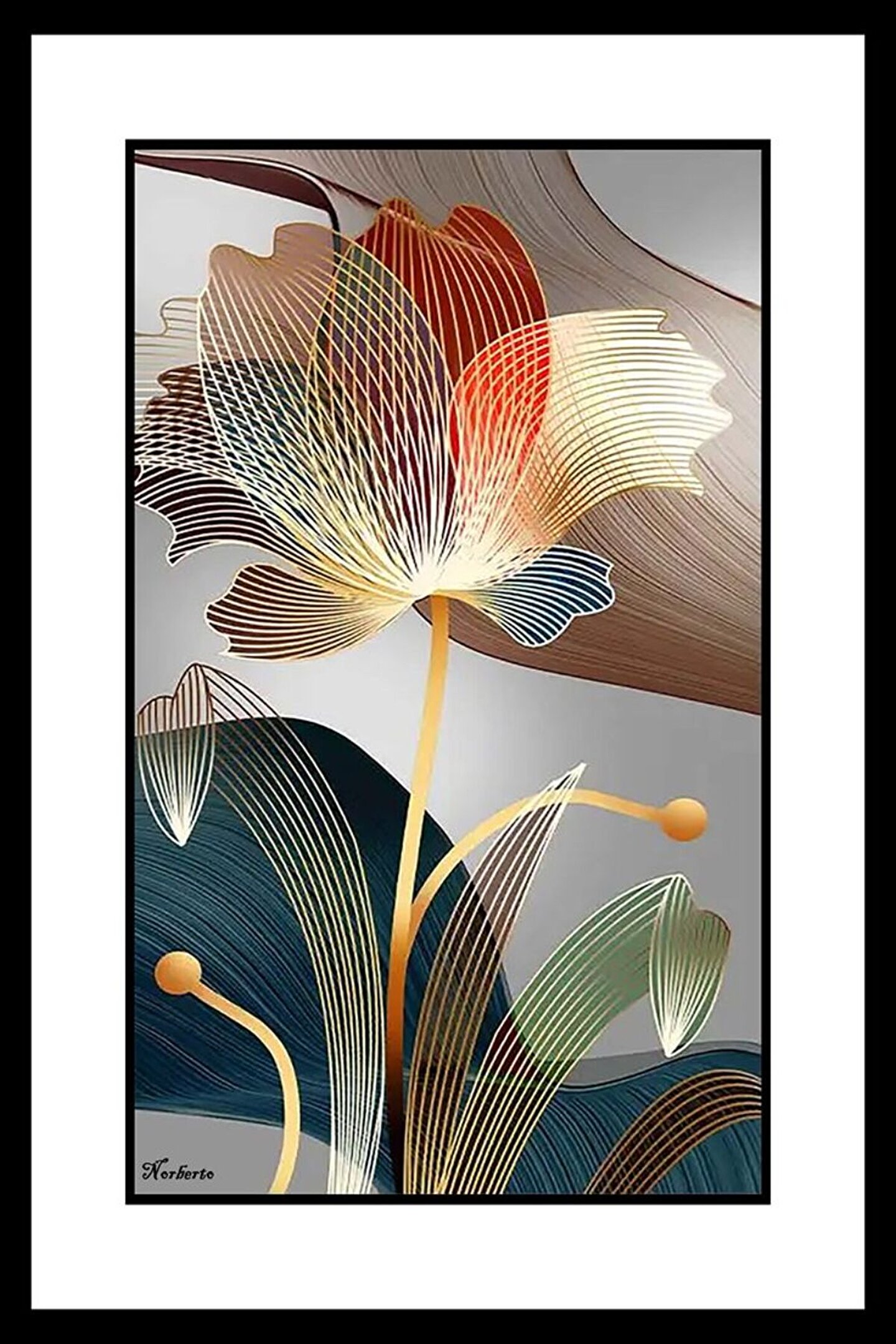 AKTÜEL POSTER Çizgili Çiçek Digital Art ( ÇERÇEVESİZ - ÇERÇEVE YOKTUR ) ( ULTRA HD ) FOLYO AFİŞ - POSTER