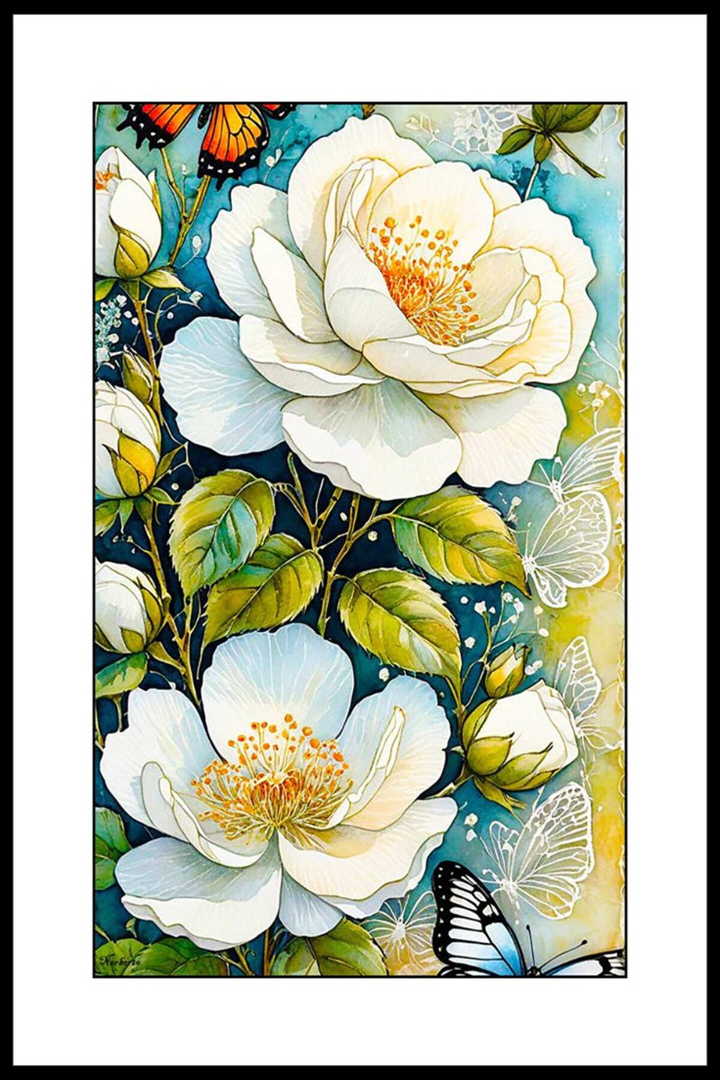 AKTÜEL POSTER İki Beyaz Gül Digital Art ( ÇERÇEVESİZ - ÇERÇEVE YOKTUR ) ( ULTRA HD ) FOLYO AFİŞ - POSTER
