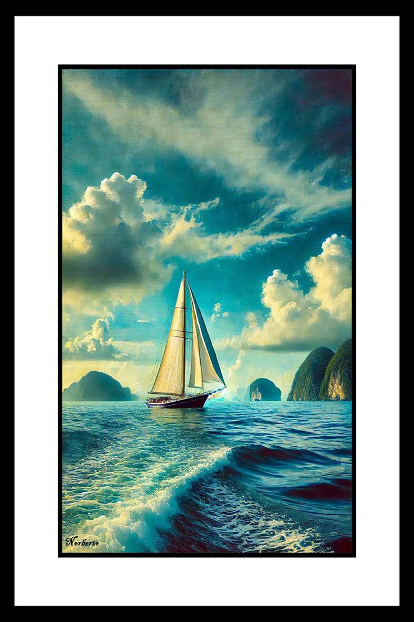 AKTÜEL POSTER Kayalık Yolunda Gemi Digital Art ( ÇERÇEVESİZ - ÇERÇEVE YOKTUR ) ( ULTRA HD ) FOLYO AFİŞ - POSTER