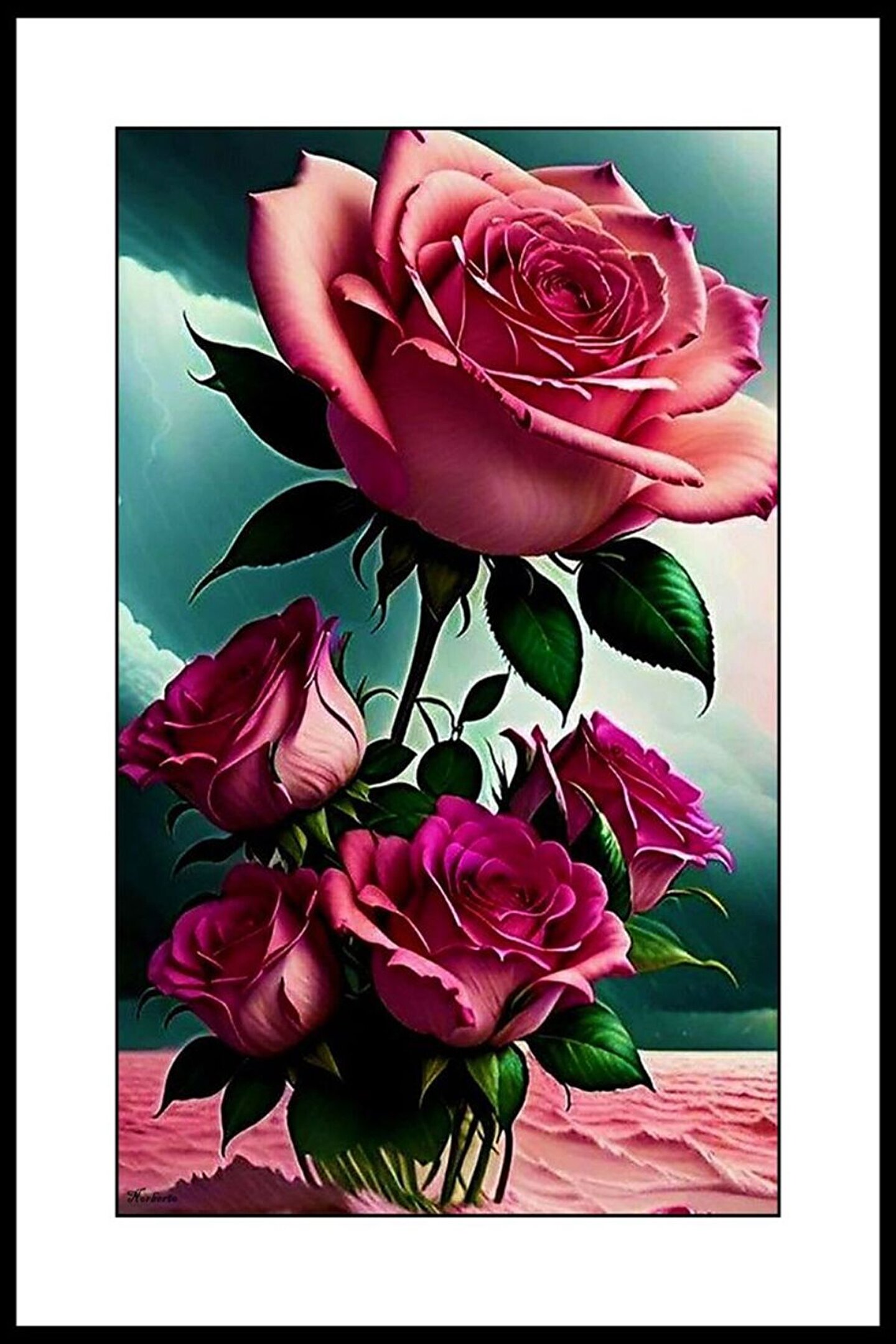 Kırmızı Güller Digital Art ( ÇERÇEVESİZ - ÇERÇEVE YOKTUR ) ( ULTRA HD ) FOLYO AFİŞ - POSTER