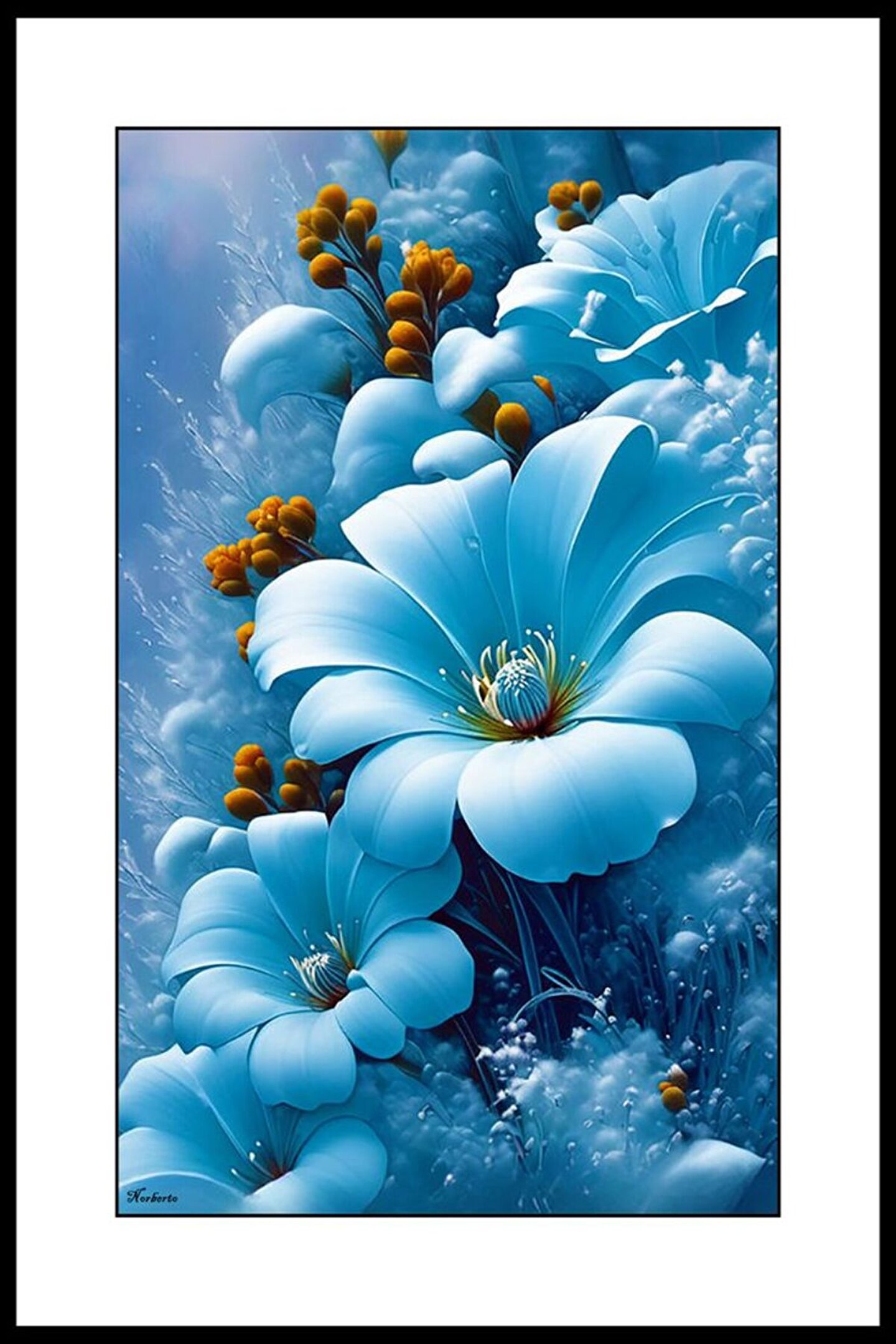 AKTÜEL POSTER Mavi Renkli Çiçekler Digital Art ( ÇERÇEVESİZ - ÇERÇEVE YOKTUR ) ( ULTRA HD ) FOLYO AFİŞ - POSTER