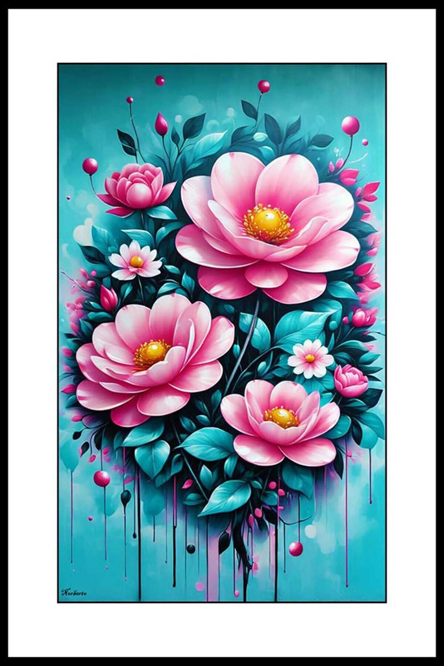 Mavi Yapraklı Güller Digital Art ( ÇERÇEVESİZ - ÇERÇEVE YOKTUR ) ( ULTRA HD ) FOLYO AFİŞ - POSTER