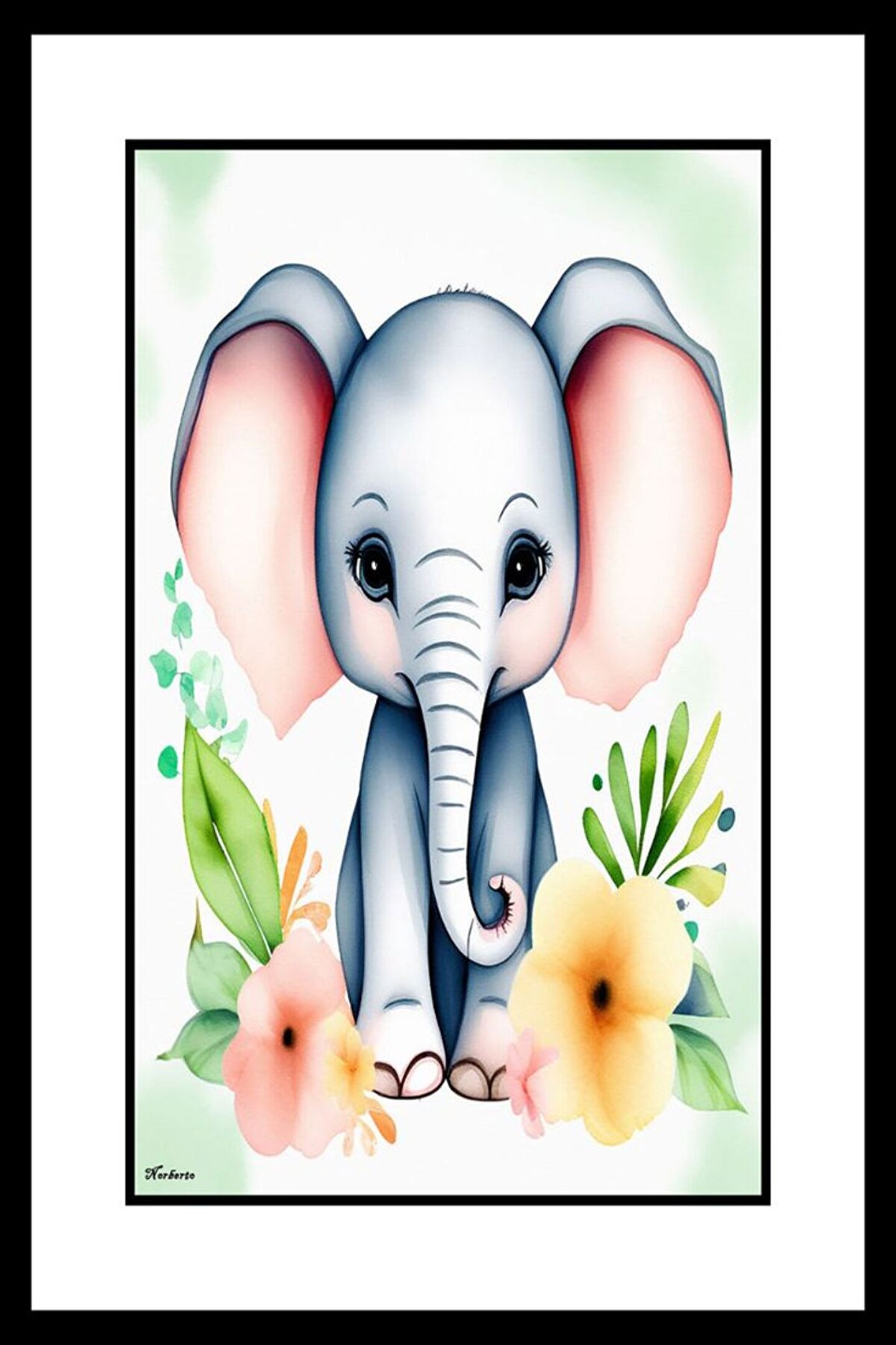 Minik Tatlı Fil Digital Art ( ÇERÇEVESİZ - ÇERÇEVE YOKTUR ) ( ULTRA HD ) FOLYO AFİŞ - POSTER